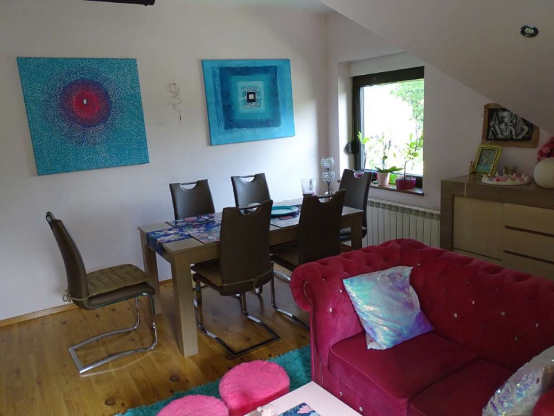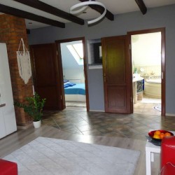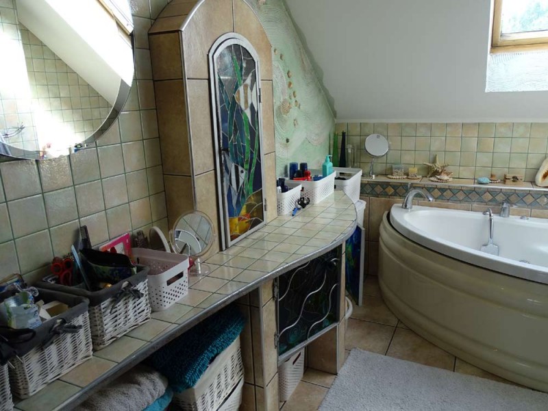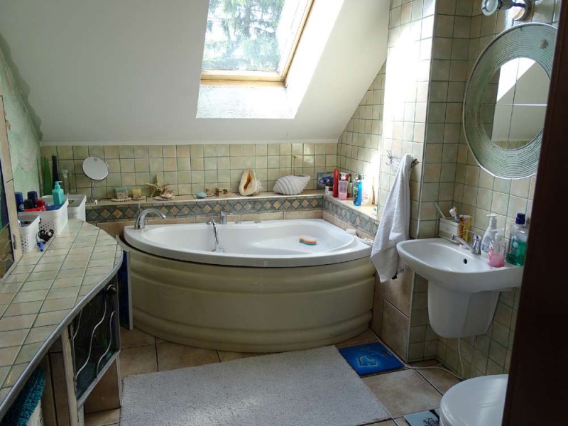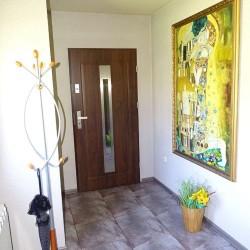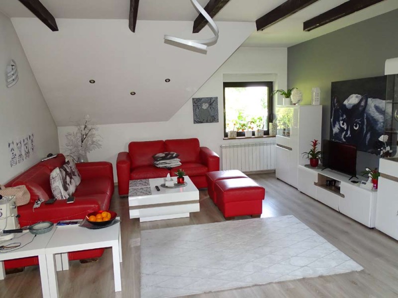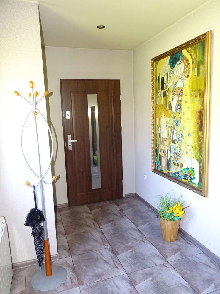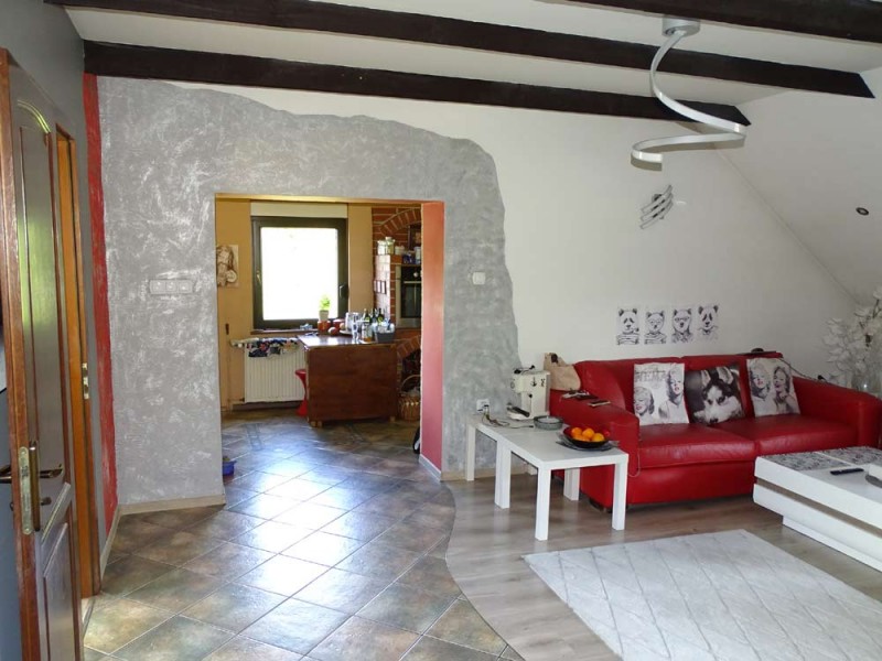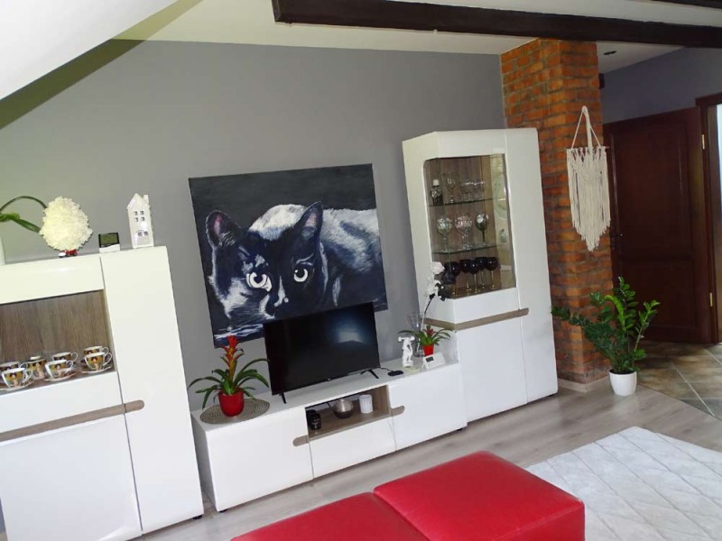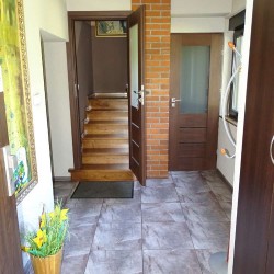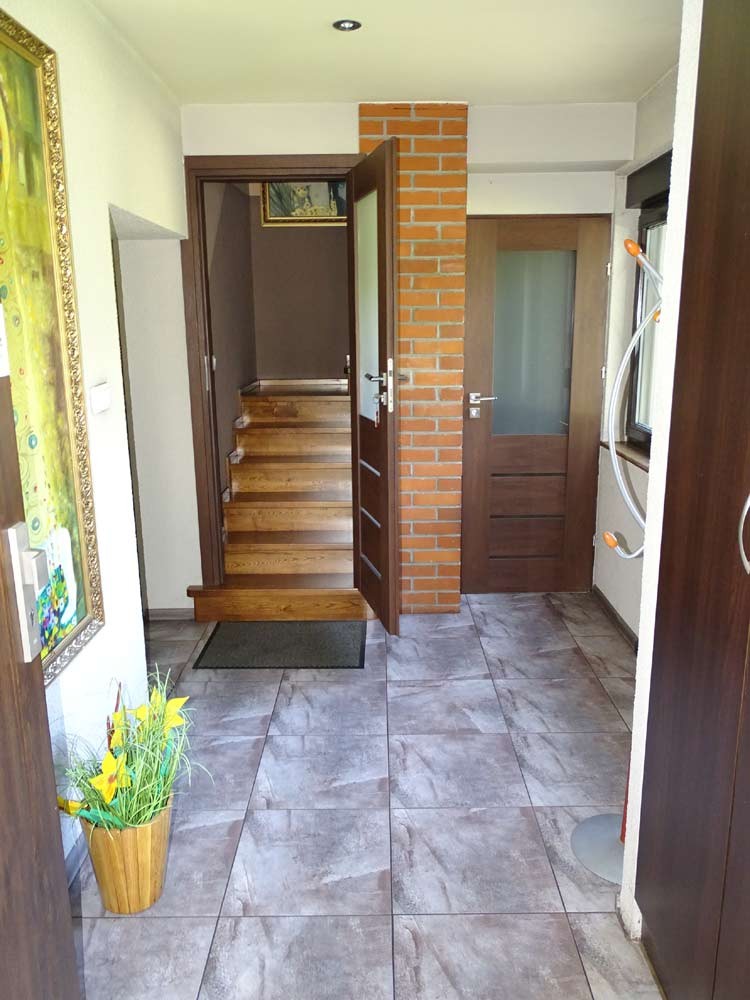 W budynku zamontowane są okna drewniane zespolone (okna na piętrze i dwa na parterze posiadają rolety zewnętrzne aluminiowe). Podłogi zostały wyłożone panelami, kaflami ceramicznymi i wykładzinami. Obie kuchnie są umeblowane a kuchnia na piętrze jest bardzo stylowa i została wybudowana z cegły a wyposażono ją w płytę indukcyjną, piekarnik elektryczny, zmywarkę i pochłaniacz pary. Centralne ogrzewanie i wodę ciepła zasila kocioł gazowy dwu funkcyjny firmy Brotje dostarczający ciepło oraz ciepłą wodę do obu lokali. Instalacja jest miedziana a grzejniki stalowe oraz aluminiowe. Dom jest czysty, suchy i zadbany a piętro posiada niepowtarzalny klimat.