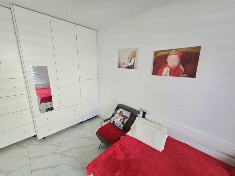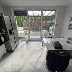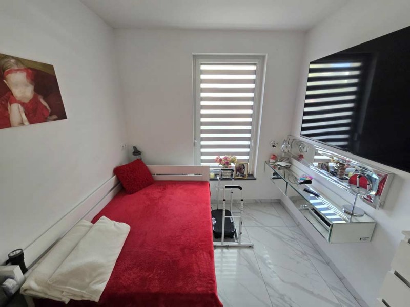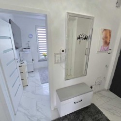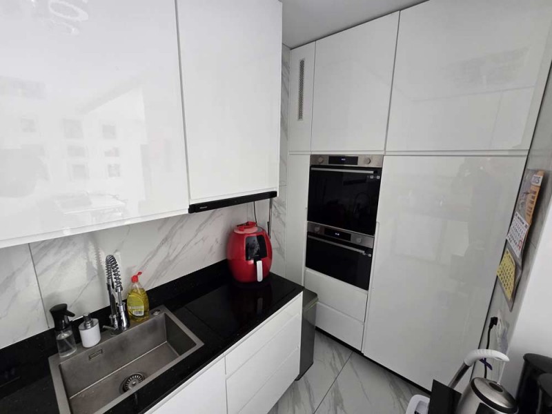 Zamontowane są wysokiej klasy okna z profili PCV z roletami zewnętrznymi aluminiowymi i roletkami wewnętrznymi dzień - noc a na podłogach znajdują się wielkoformatowe kafle ceramiczne. Salon jest klimatyzowany. Kuchnia została umeblowana meblami na wymiar, posiada zabudowany sprzęt gospodarstwa domowego - lodówko - zamrażarkę, płytę indukcyjną, piekarnik elektryczny, zmywarkę, pochłaniacz pary oraz filtr wody. Łazienka został wykończona w płytkach ceramicznych, zamontowano w niej wannę, geberit i umywalkę wraz szafką. Centralne ogrzewanie i wodę ciepłą zasila kocioł gazowy dwu – funkcyjny, jest to ogrzewanie podłogowe. Cena obejmuje zabudowę trwałą - meble kuchenne na wymiar wraz ze sprzętem agd, dwie pojemne szafy garderobiane na wymiar oraz trzy telewizory. Pozostałe umeblowanie będące na wyposażeniu mieszkania jest w opcji.