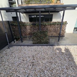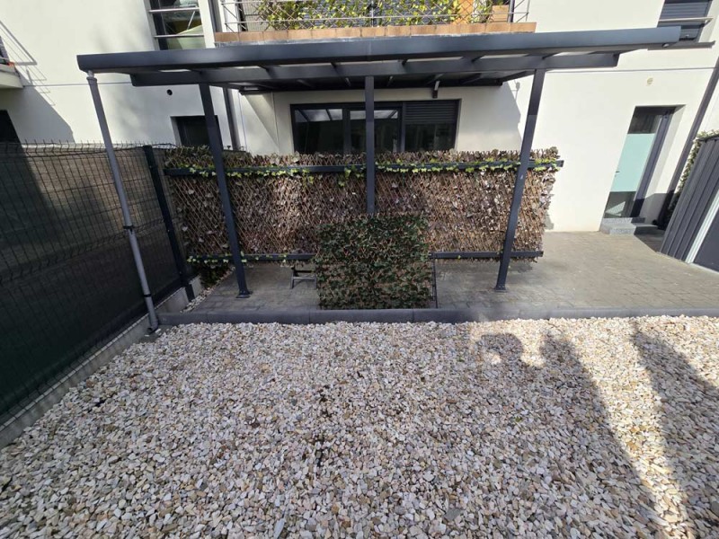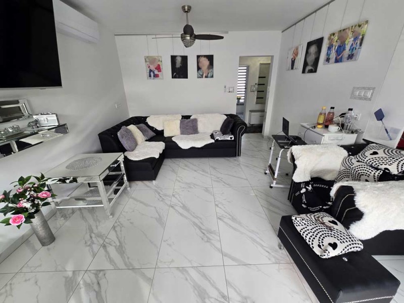 Wewnątrz mamy do dyspozycji pokój dzienny z aneksem kuchennym i wyjściem na taras, łazienkę, hol, dwie sypialnie, skrytkę pod schodami i przedsionek. Ogródek jest usytuowany od strony południowej i jest zadaszony i zagospodarowany