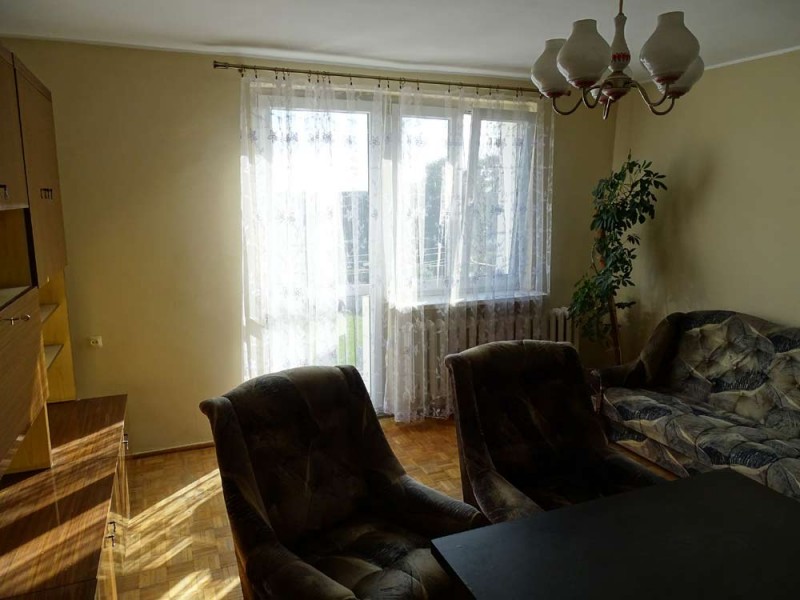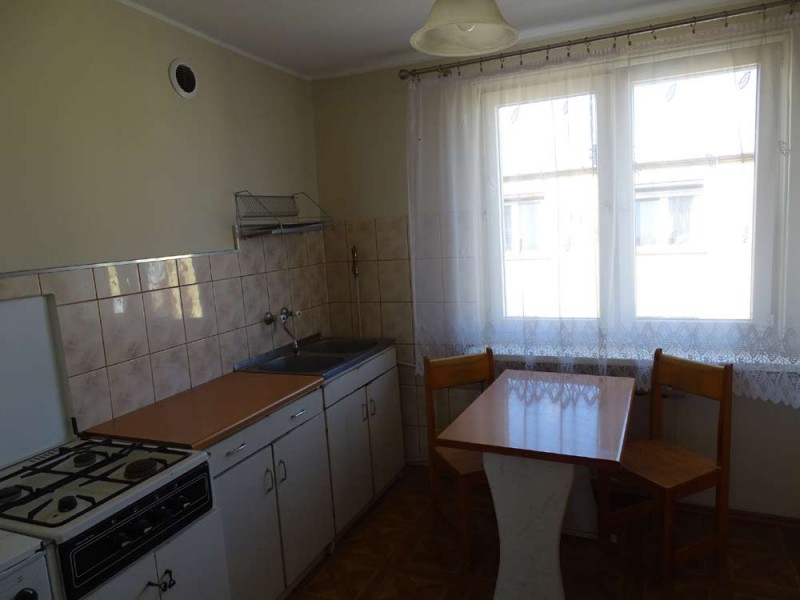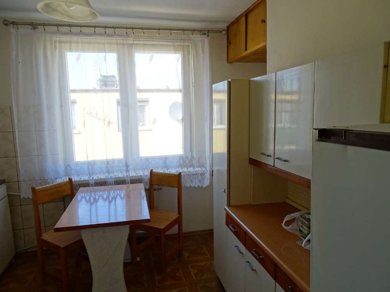 Wewnątrz mamy dyspozycji trzy pokoje, kuchnię ze skrytką, łazienkę, przedpokój oraz balkon. Do lokalu przynależy pomieszczenie znajdujące się w piwnicy budynku. Część okien wymieniono na PCV a pozostałe okna są drewniane. Na podłogach znajduje się mozaika. Widna Kuchnia jest umeblowana. Łazienka z oknem jest wykończona w płytkach ceramicznych, posiada ona wannę. Centralne ogrzewanie i wodę ciepłą zasila lokalna kotłownia dostarczająca ciepło do wszystkich mieszkań. Teren wokół budynku jest zagospodarowany, w sąsiedztwie mamy do dyspozycji parking dla mieszkańców i plac zabaw dla dzieci. Zapraszamy Państwa do kontaktu celem umówienia terminu prezentacji.