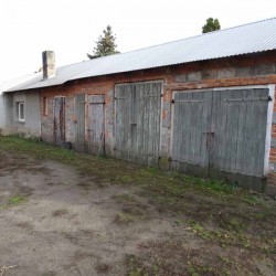Czwarty z budynków to budynek gospodarczo - garażowy, którego powierzchnia użytkowa wynosi 77 m2 a materiałem budowy jest cegła i pustak.