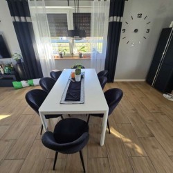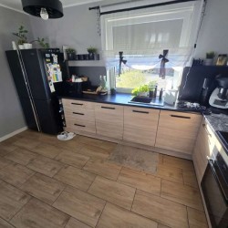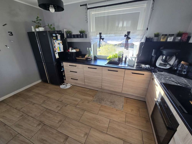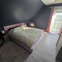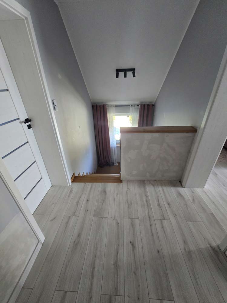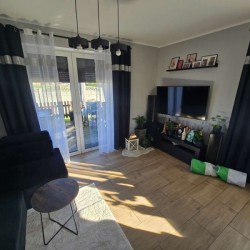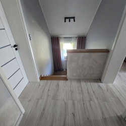 Zamontowane są okna z profili PCV 3 szybowe, które posiadają rolety zewnętrzne aluminiowe. Ze względów użytkowych i estetycznych podłogi zostały wykończone panelami i kaflami ceramicznymi. Widna kuchnia została umeblowana meblami na wymiar, wyposażono ją w sprzęt gospodarstwa domowego. Obie łazienki zostały wykończone w płytkach ceramicznych, łazienka na parterze posiada prysznic a w łazience na piętrze mamy do dyspozycji wannę. Centralne ogrzewanie i wodę ciepłą zasila nowoczesny kocioł gazowy dwu funkcyjny firmy Beretta z zasobnikiem wody, na parterze rozprowadzono ogrzewanie podłogowe a na piętrze tradycyjne - z grzejników stalowych. Cena obejmuje zabudowę trwałą - meble kuchenne wraz ze sprzętem agd oraz trzy pojemne szafy garderobiane na wymiar.