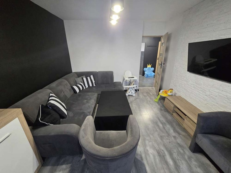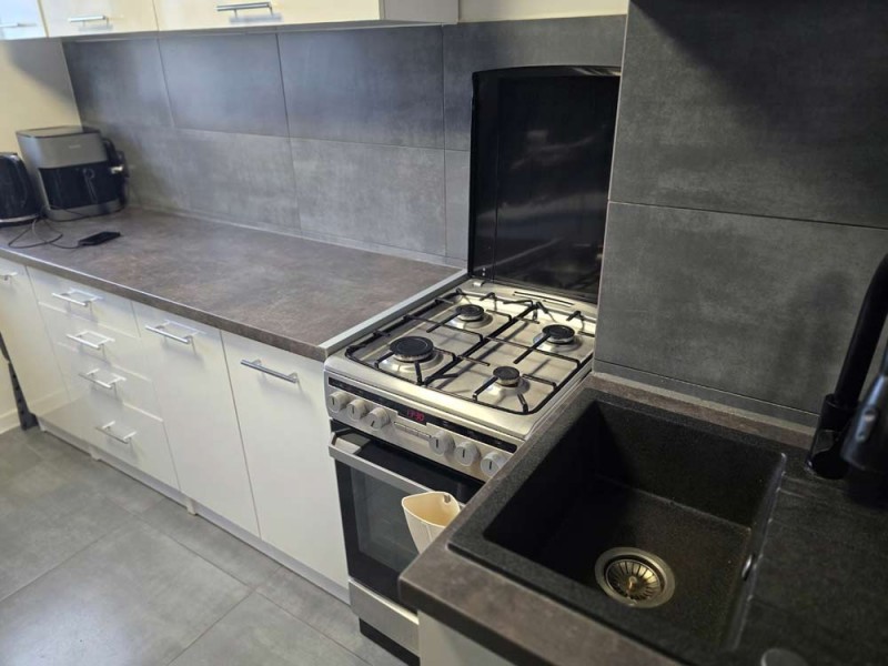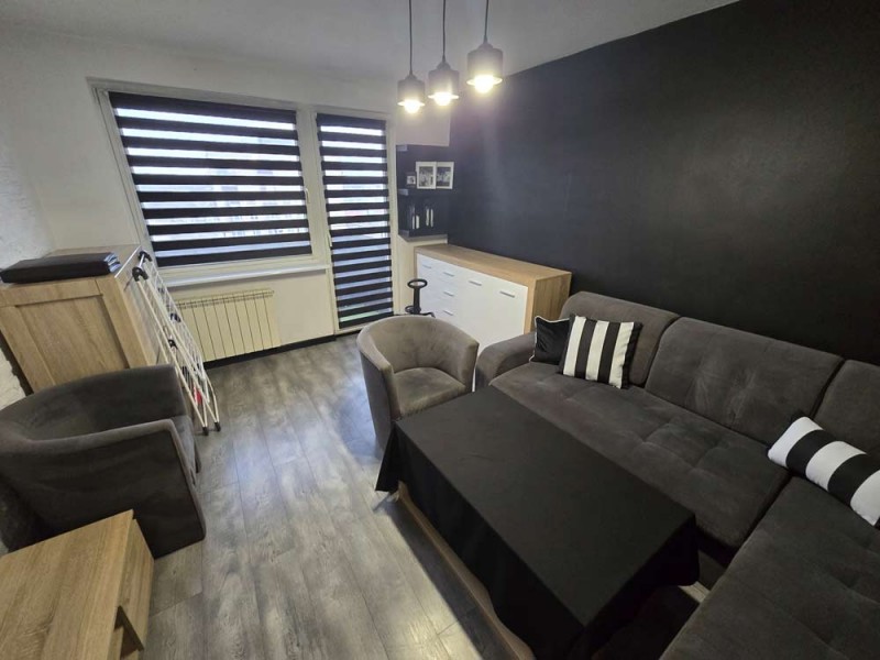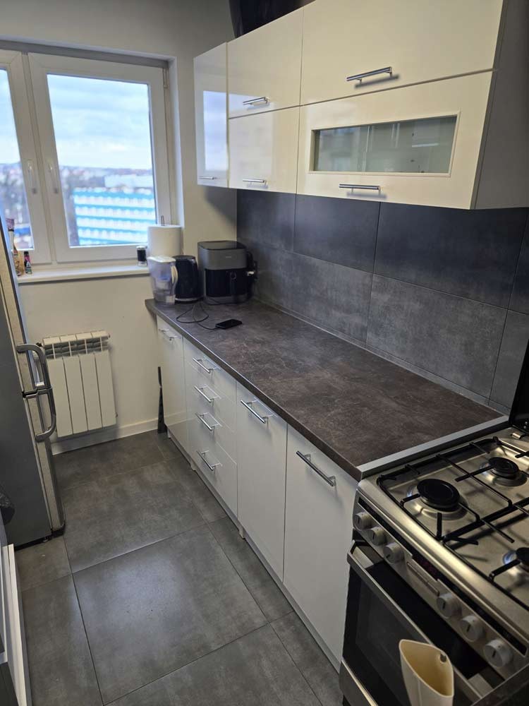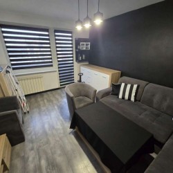 Mieszkanie jest po remoncie, zostało przytulnie urządzone. Zamontowane są okna z profili PCV z roletkami wewnętrznymi a na podłogach znajdują się panele i kafle ceramiczne. Ściany zostały pokryte gładzią gipsową. Kuchnia jest umeblowana meblami na wymiar, wyposażono ją w sprzęt gospodarstwa domowego - płytę gazową, piekarnik elektryczny, lodówkę i pochłaniacz pary. Łazienkę z toaletą wykończono w płytkach ceramicznych, tutaj mamy do dyspozycji wannę, pralkę automatyczną i umywalkę wraz z szafką. Centralne ogrzewanie zasila ciepłownia miejska a wodę podgrzewa terma gazowa. Grzejniki zostały wymienione na aluminiowe. Cena obejmuje pełne umeblowanie mieszkania wraz ze sprzętem agd.