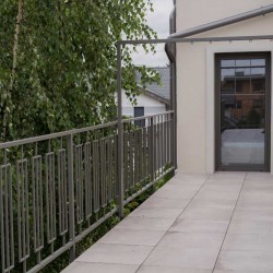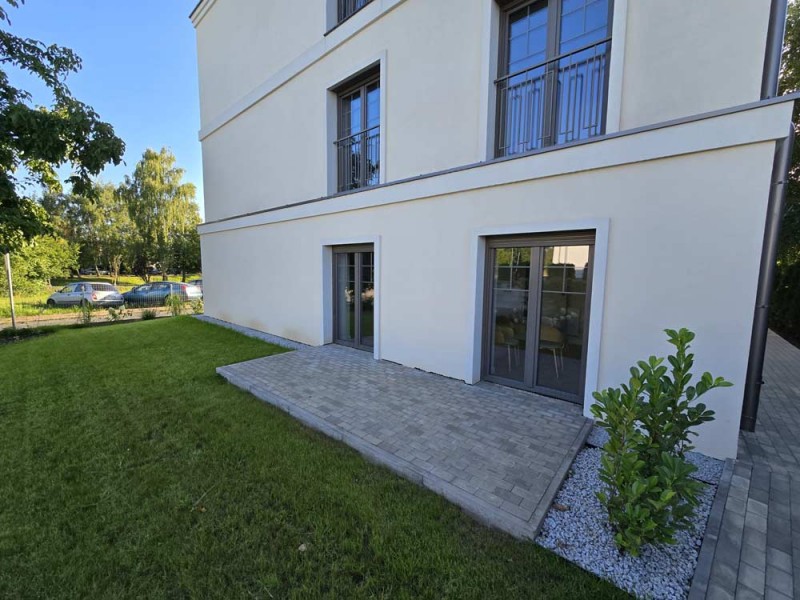 Do wykończenia klatek schodowych wykorzystano płyty granitowe. Zamontowane są okna z profili PCV, które wyposażono w rolety zewnętrzne aluminiowe. Każde z mieszkań wyposażone jest w centralne ogrzewanie zasilane z kotła gazowego dwu funkcyjnego firmy Immergas, który również podgrzewa wodę. Powierzchnia działki wynosi 882 m2, teren posesji został ogrodzony, jest zagospodarowany, ciągi piesze i parking zostały utwardzone betonową kostką.