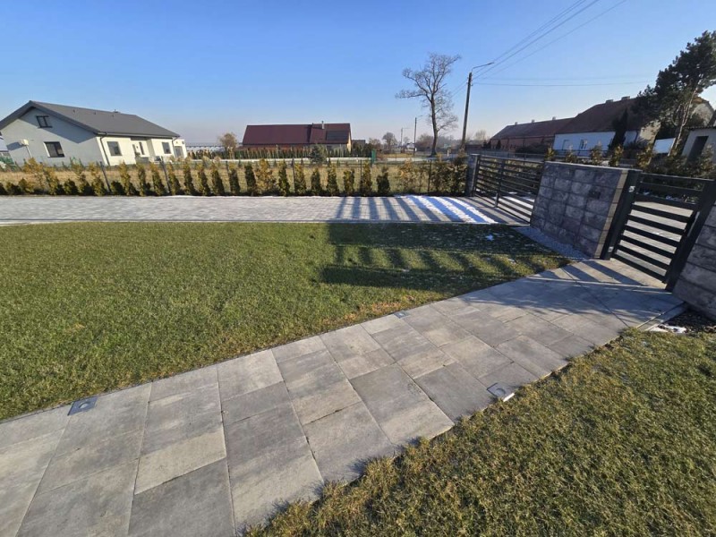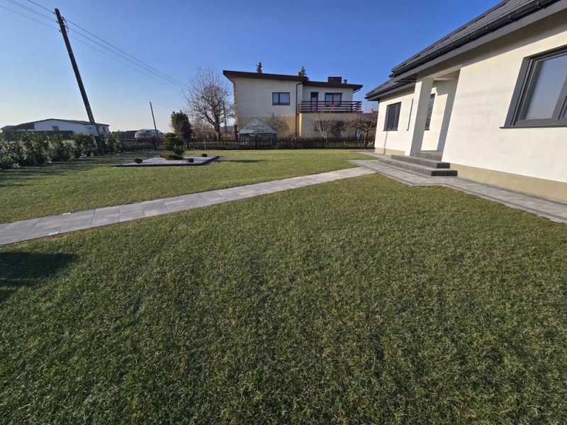 Teren działki został ogrodzony z trzech stron płotem panelowym, wjazd na posesje i chodnik są utwardzone ozdobną kostką. Założony jest trawnik a posesja jest zamykana bramą metalową. Nieruchomość została przyłączona do sieci energetycznej, wodnej i gazowej a odprowadzenie ścieków odbywa się za pomocą przydomowej oczyszczalni. Dom posiada dogodny dojazd ulicą asfaltową. Zapraszamy Państwa do kontaktu celem umówienia terminu prezentacji.