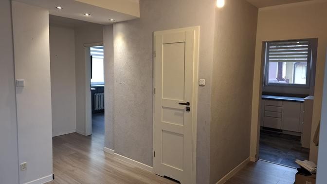 Mieszkanie posiada powierzchnię 72 m2, składa się trzech pokoi, kuchni, łazienki, wc, korytarza oraz balkonu. Kuchnia została umeblowana i wyposażona w płytę gazową piekarnik, zmywarkę oraz zlewozmywak. W sypialni znajduje się szafa w zabudowie pozostałe pokoje będą puste. Łazienkę wykończono płytkami ceramicznymi i wyposażono w umywalkę wraz z szafką oraz wannę. Centralne ogrzewanie oraz wodę ciepłą zasila ciepłociąg miejski.