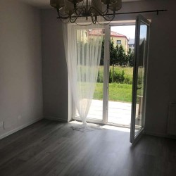 Mieszkanie położone jest na parterze budynku, który wyposażony jest w windę, jest usytuowane od strony południowej. Układ pomieszczeń zaprojektowany został w sposób funkcjonalny a materiały użyte do wykończenia wnętrza są wysokiej jakości. Wewnątrz do dyspozycji mamy pokój dzienny z aneksem kuchennym i wyjściem do ogrodu, sypialnię, łazienkę oraz przedpokój.