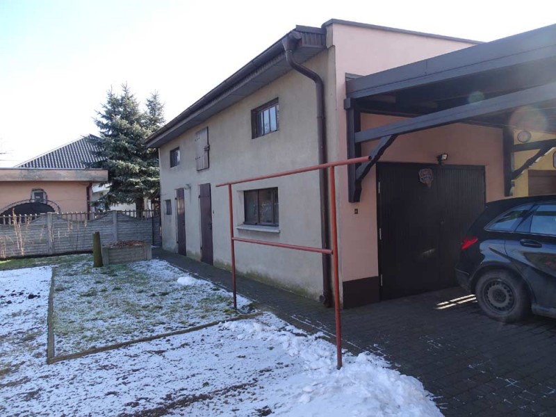 Na działce znajduje się murowany dwukondygnacyjny budynek gospodarczo-garażowy oraz zadaszona wiata postojowa. Urządzony jest ogród. Wjazd na posesję i chodnik są utwardzone betonową kostką. Nieruchomość została przyłączona do sieci energetycznej, wodnej, kanalizacyjnej, i gazowej.