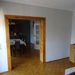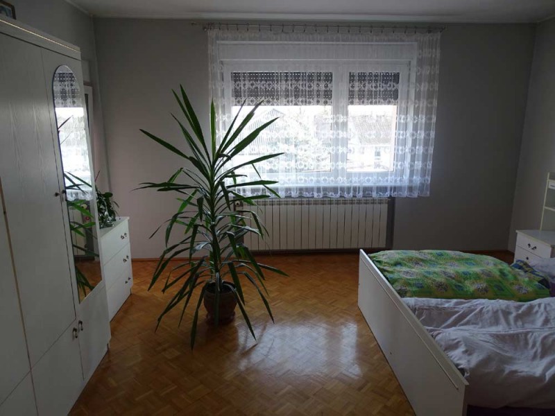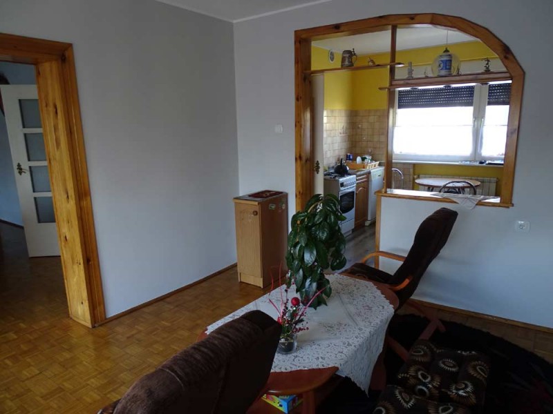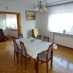 Dom jest przytulnie urządzony, czysty i zadbany. Zamontowane są okna PCV wraz z roletami zewnętrznymi aluminiowymi a ściany zostały pokryte gładzią szpachlową. Stolarka drzwiowa wewnętrzna jest wykonana z drewna a na podłogach znajduje się mozaika i kafle ceramiczne.