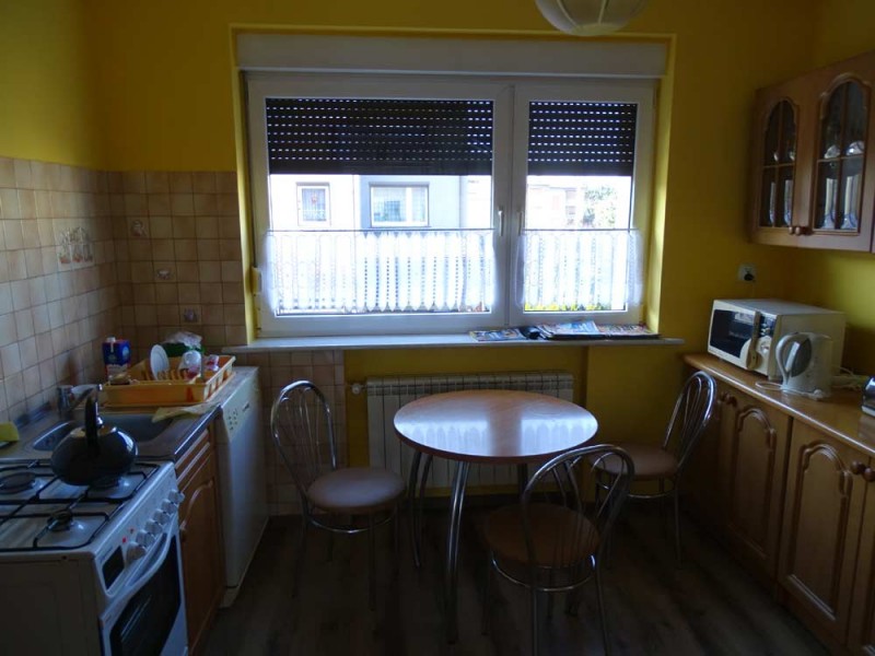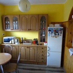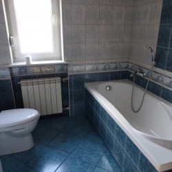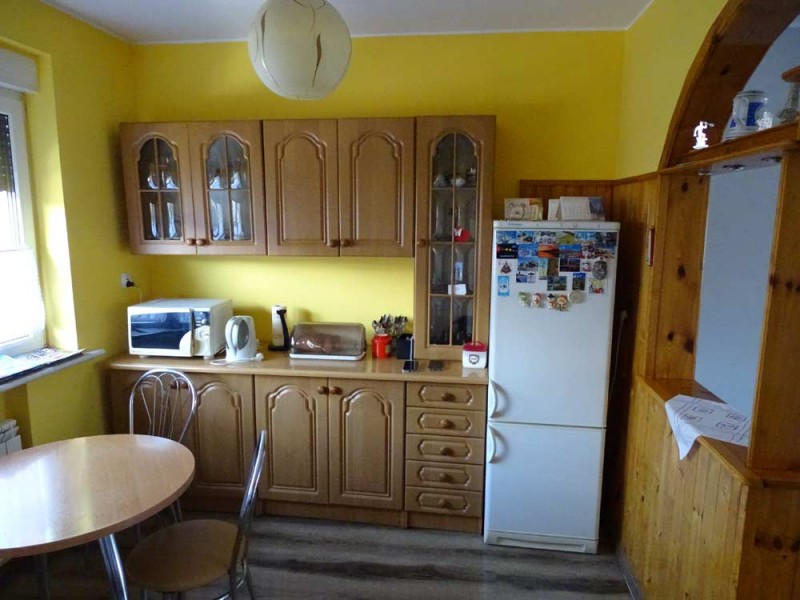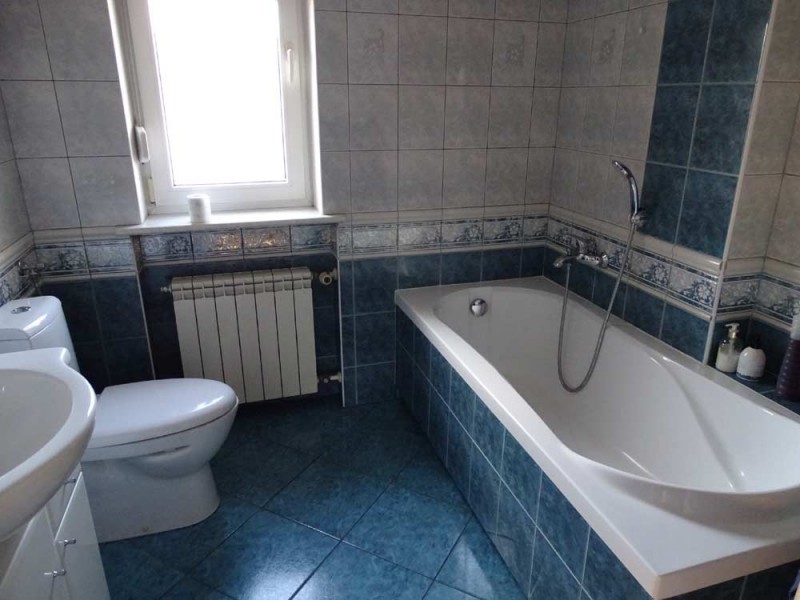 Kuchnia została umeblowana, posiada sprzęt gospodarstwa domowego. Podłoga i ściany łazienki zostały wyłożone płytkami ceramicznymi, zamontowano w niej wannę. Centralne ogrzewanie zasila piec na eko groszek oraz kocioł gazowy dwu funkcyjny firmy Brotje, instalacja jest miedziana a grzejniki stalowe.