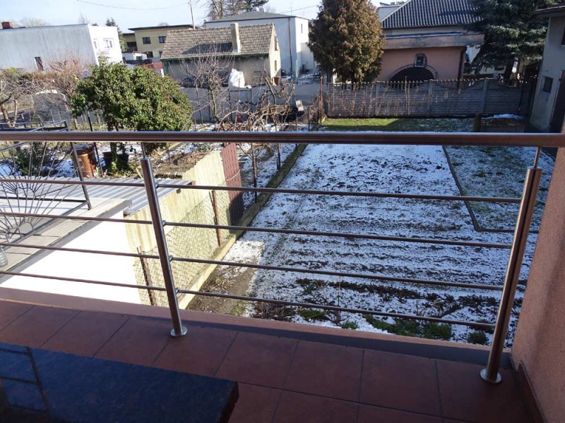 Na piętrze znajdują się trzy sypialnie, łazienkę i drugi balkon.