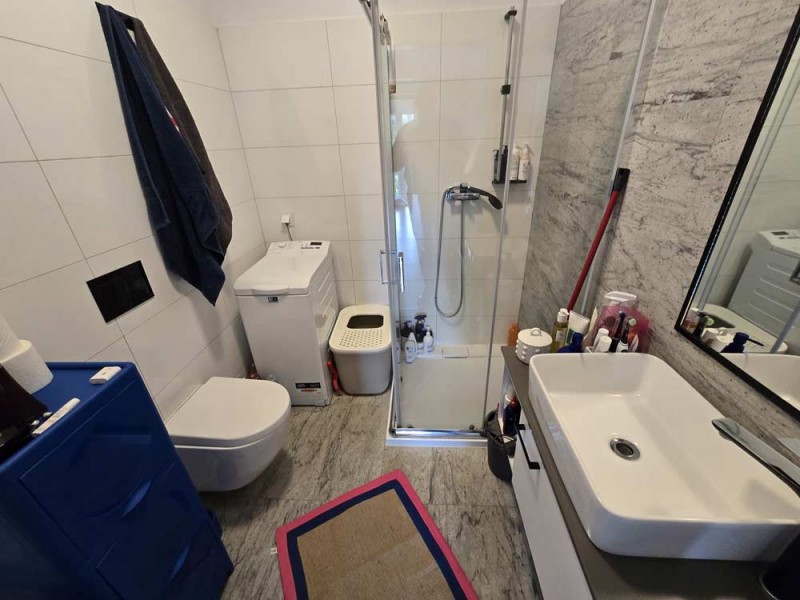 Materiały użyte do wykończenia wnętrza są wysokiej jakości, lokal jest utrzymany w wysokim standardzie. Zamontowane są okna z profili PCV, okna posiadają rolety zewnętrzne aluminiowe z napędem elektrycznym. Ze względów użytkowych i estetycznych podłogi zostały pokryte panelami i wielkoformatowymi kaflami ceramicznymi. Ściany są gipsowane. Kuchnia została umeblowana meblami na wymiar, wyposażono ją w sprzęt gospodarstwa domowego – lodówkę, płytę indukcyjną, piekarnik elektryczny, zmywarkę i pochłaniacz pary. Łazienka jest wykończona w płytkach ceramicznych, posiada prysznic geberit oraz umywalkę wraz z szafką. Centralne ogrzewanie i wodę ciepłą zasila ciepłownia miejska. Cena obejmuje zabudowę trwałą – meble kuchenne wraz ze sprzętem agd a pozostałe umeblowanie i wyposażenie jest w opcji.