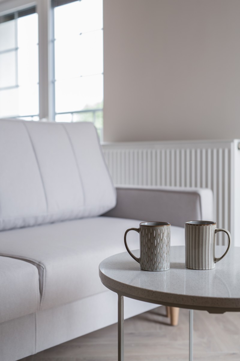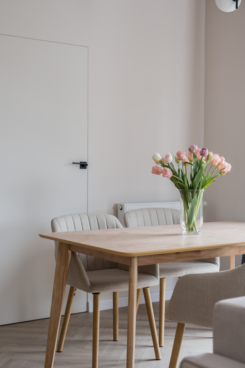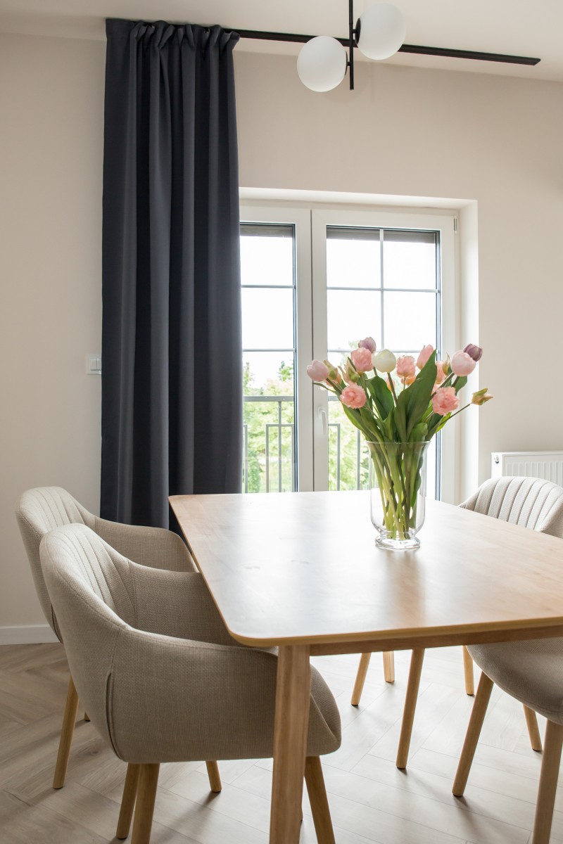 Materiały użyte do wykończenia wnętrza są wysokiej jakości, lokal jest utrzymany w wysokim standardzie. Zamontowane są okna z profili PCV. Ze względów użytkowych i estetycznych podłogi zostały pokryte panelami i wielkoformatowymi kaflami ceramicznymi. Ściany są gipsowane. Kuchnia została umeblowana meblami na wymiar, wyposażono ją w sprzęt gospodarstwa domowego – lodówkę, płytę indukcyjną, piekarnik elektryczny, zmywarkę i pochłaniacz pary. Salon jest klimatyzowany. Łazienka jest wykończona w płytkach ceramicznych, posiada prysznic geberit, umywalkę wraz z szafką oraz pralkę automatyczną. Centralne ogrzewanie i wodę ciepłą kocioł gazowy dwu funkcyjny, grzejniki są stalowe. Cena obejmuje zabudowę trwałą – meble kuchenne wraz ze sprzętem agd oraz pozostałe umeblowanie i wyposażenie.