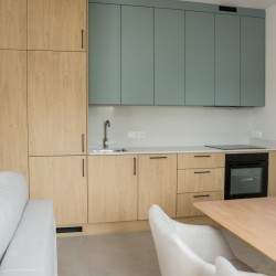 Lokal ten stanowi odrębną własność z udziałem w gruncie i księgą wieczystą a jego powierzchnia użytkowa wynosi 34,56 m2. Mieszkanie jest położone na drugim piętrze. Układ pomieszczeń został zaprojektowany w sposób nowoczesny i przestrzenny. Wewnątrz mamy do dyspozycji pokój dzienny z aneksem kuchennym, jedną sypialnię, łazienkę, przedpokój oraz balkon o pow. 8,40 m2.