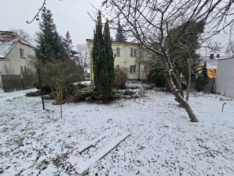 Działka posiada wymiary 20 x 61 metrów, jest ogrodzona i zagospodarowana. Jej front jest ogrodzony płotem kutym na podmurówce. Na terenie posesji znajduje się murowany budynek gospodarczo garażowy o powierzchni około 60 m2 oraz nasadzenia drzew i krzewów ozdobnych, urządzony jest ogród.