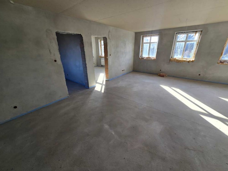 Zamontowane są okna z profili PCV brązowo - białe. Rozprowadzone zostały instalacje elektryczne, wodne, kanalizacyjne i gazowe a ściany zostały pokryte tynkiem. Centralne ogrzewanie i wodę ciepłą zasila kocioł gazowy dwu funkcyjny, częściowo jest to ogrzewanie podłogowe i tradycyjne - z grzejników stalowych.