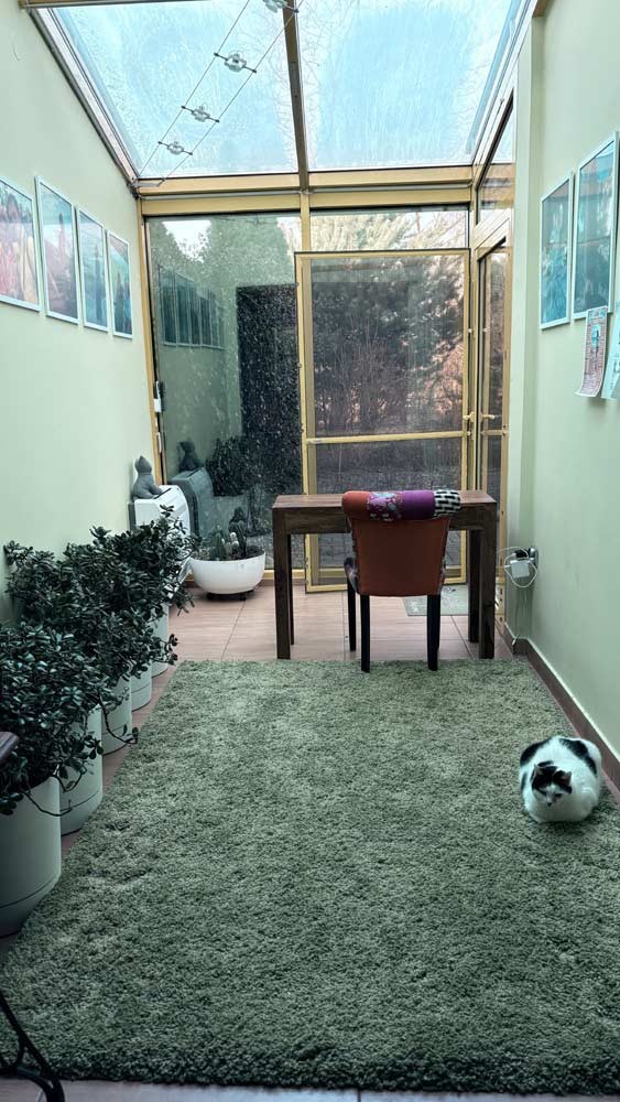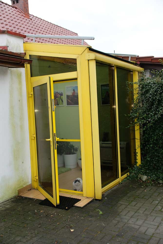 Dodatkowym atutem jest stylowy, przeszklony pokój, idealny jako gabinet, miejsce do relaksu lub pracownia. Można do niego wejść zarówno z wnętrza domu, jak i bezpośrednio z ogrodu.