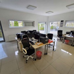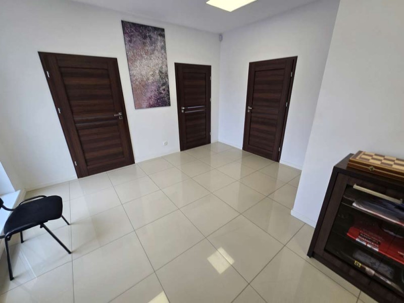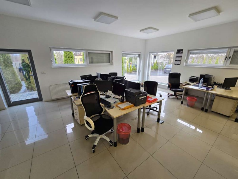 Oferujemy Państwu do wynajęcia budynek użytkowy z przeznaczeniem na biura, usługi, siedzibę firmy, gabinety lekarskie, działalność edukacyjną. Obiekt ten położony jest przy ulicy Zakątek w Ostrowie Wielkopolskim. Jest to budynek biurowo - usługowy, parterowy, wybudowany w technologii tradycyjnej, murowanej. Posadowiony jest na działce o powierzchni 1800 m2. Wewnątrz mamy do dyspozycji holl, 4 pomieszczenia biurowe, salę główną, pomieszczenie magazynowe, 2 łazienki, zaplecze socjalne oraz garaż z 2 bramami wjazdowymi. Lokal ten jest utrzymany w bardzo dobrym stanie technicznym, posiada monitoring, system alarmowy klimatyzatory oraz centralne ogrzewanie z pieca na pellet. Okna z profili PCV posiadają rolety zewnętrzne aluminiowe, podłogi zostały pokryte wielkoformatowymi kaflami ceramicznymi. Na dachu zamontowana została instalacja fotowoltaiczna o mocy 14 kW. Teren posesji jest ogrodzony, i bezpieczny. Parkowanie samochodów zapewnia spory parking.