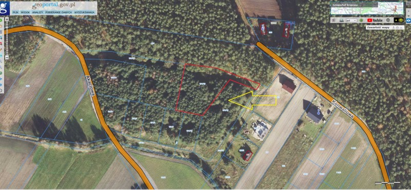 Klasa użytku - RVI, sąsiedztwo lasu. Media w drodze gruntowej: energia elektryczna oraz woda.
