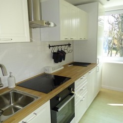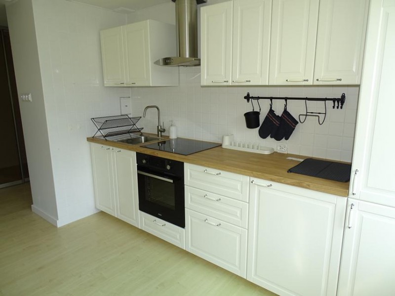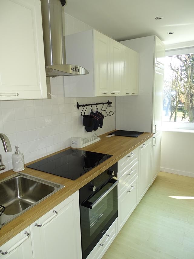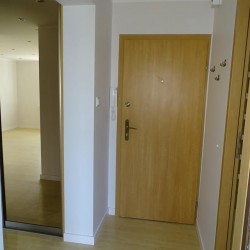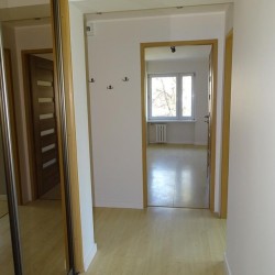 Mieszkanie posiada powierzchnię 59,40 m2, składa się z pokoju dziennego połączonego z aneksem kuchennym, dwóch pokoi, łazienki, korytarza oraz balkonu. Do lokalu przynależy jedno pomieszczenie w piwnicy. Kuchnia została umeblowana i wyposażona w płytę indukcyjną, piekarnik, lodówko-zamrażarkę, zlewozmywak oraz pochłaniacz pary. Pokoje w mieszkaniu są puste. Łazienkę wykończono płytkami ceramicznymi i wyposażono w wannę, toaletę oraz umywalkę. W korytarzu i w jednym z pokoi znajdują się szafy garderobiane. Centralne ogrzewanie oraz wodę ciepłą zasila ciepłociąg miejski.
