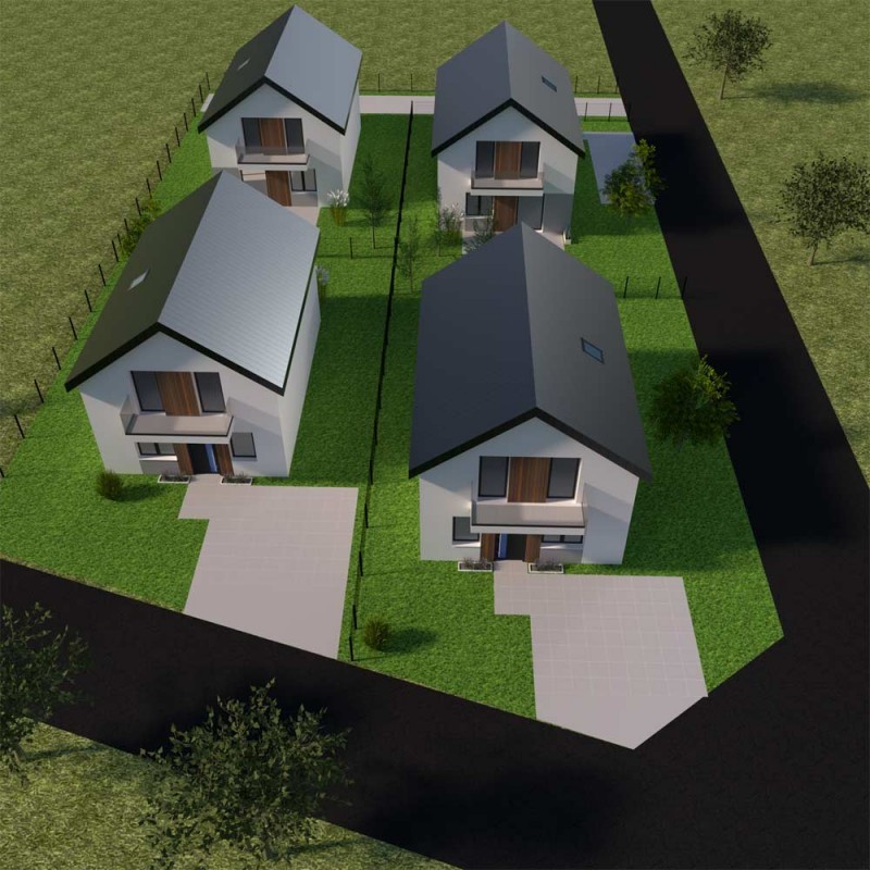 Osiedle składa się z 4 domów wolnostojących oraz 2 w zabudowie bliźniaczej. Każdy budynek to przemyślana przestrzeń o powierzchni 102 m², usytuowana na działce ok. 350 m².