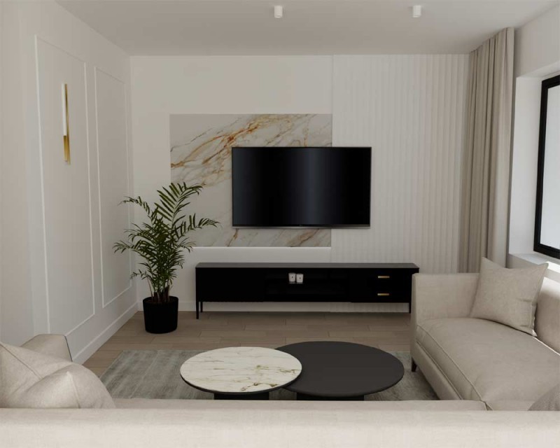 Wizualizacje wnętrz oraz zdjęcia poglądowe przedstawiają wysoki standard inwestycji zrealizowanych przez dewelopera przy ul. Środkowej oraz przy ulicy Polskiego Czerwonego Krzyża.