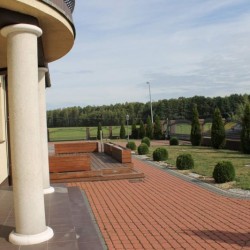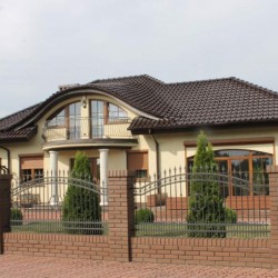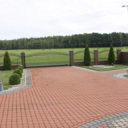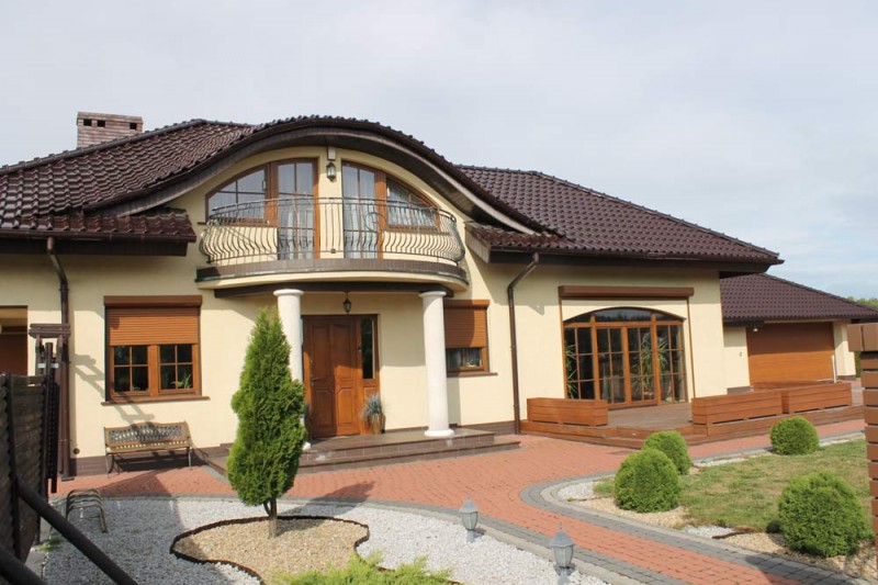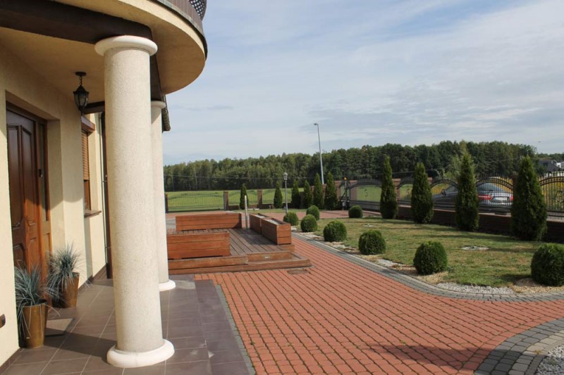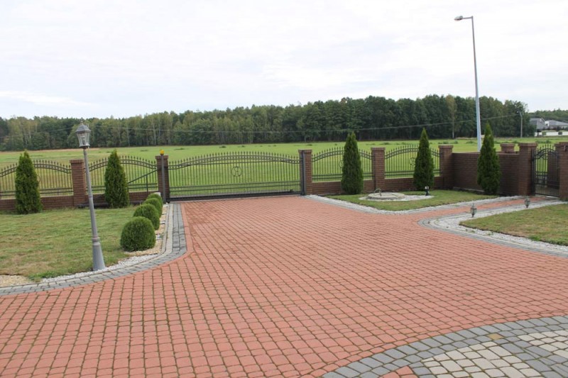 Działka ogrodzona płotem kutym na fundamencie klinkierowym , z pomysłem zagospodarowana działka, utwardzony wjazd i chodnik kostką granitową. Garaż dwu - stanowiskowy zamykany jest bramą segmentową sterowaną elektrycznie firmy Horrman. Dodatkowo w ogrodzie znajduje się zbiornik na wodę deszczową, służącą do podlewania licznych krzewów i drzewek ozdobnych. W głębi ogrodu wygospodarowano miejsce na rekreacyjny taras służący jako miejsce do wypoczynku i rekreacji.