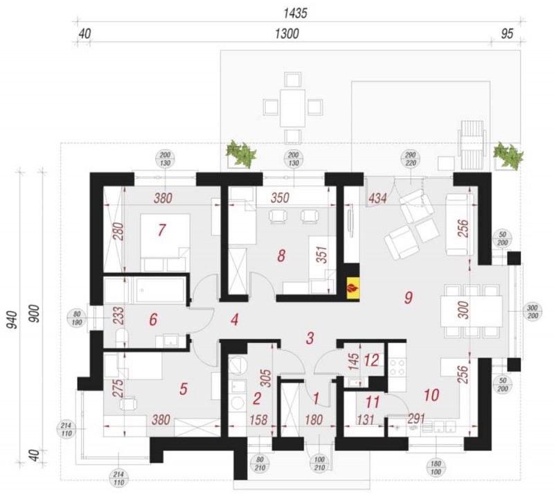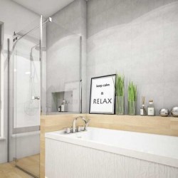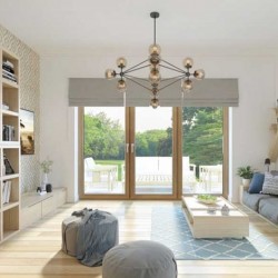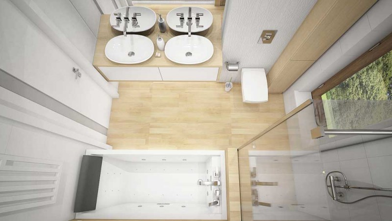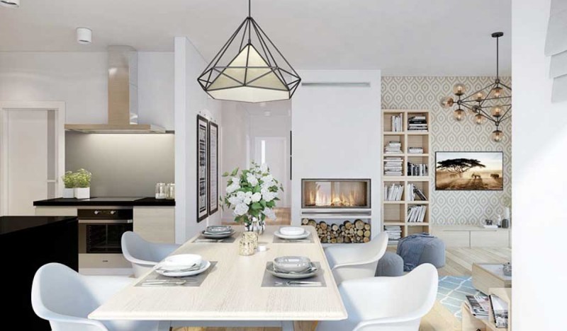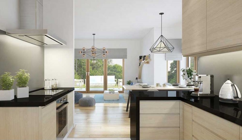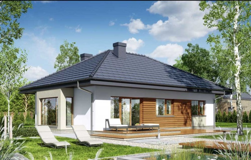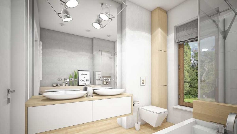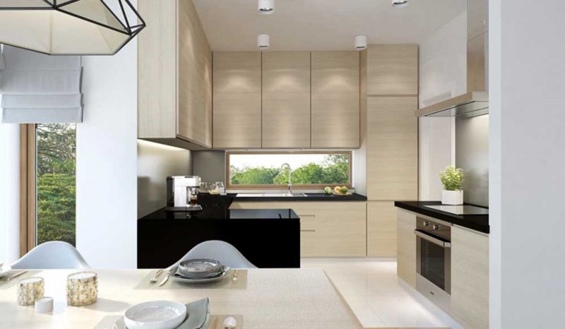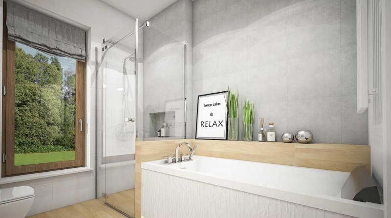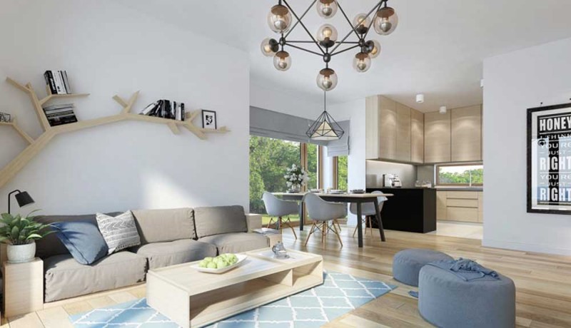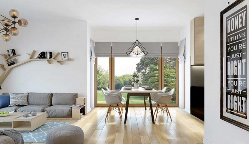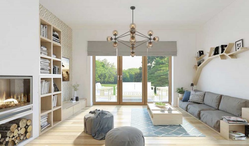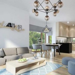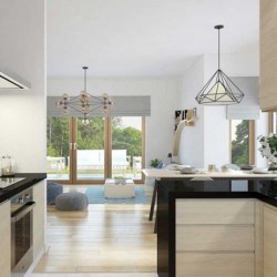 Domy zaprojektowano w sposób przemyślany i nowoczesny. W projekcie uwzględniono układ pomieszczeń, który pozwolił na stworzenie dwóch stref – dziennej i wypoczynkowej. Warto tutaj zwrócić Państwa uwagę na fakt, że wewnątrz mamy do dyspozycji trzy oddzielne sypialnie. Ze słonecznego, usytuowanego od strony południowo – wschodniej salonu jest wyjście na taras i do ogrodu. Doświetlenie pomieszczeń zapewniają okna typu portfenetr – tutaj zrezygnowano z tradycyjnych parapetów i okna zaczynają się od podłogi. Elewacja budynków zostanie wykończona elementami przypominającymi drewno dając efekt łączący nowoczesność i tradycyjny styl.