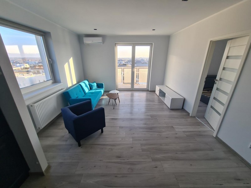 Mieszkanie posiada powierzchnię 44 m2 i składa się z pokoju dziennego połączonego z aneksem kuchennym, sypialni, łazienki oraz przedpokoju. Kuchnię umeblowano meblami na wymiar i wyposażono w płytę indukcyjną, piekarnik, zmywarkę, lodówko-zamrażarkę, pochłaniacz powietrza oraz zlewozmywak. Pokoje w mieszkaniu są częściowo umeblowane. Łazienkę wykończono płytkami ceramicznymi i wyposażono w pralkę, kabinę prysznicową, geberit oraz umywalkę. W mieszkaniu zamontowano klimatyzację.