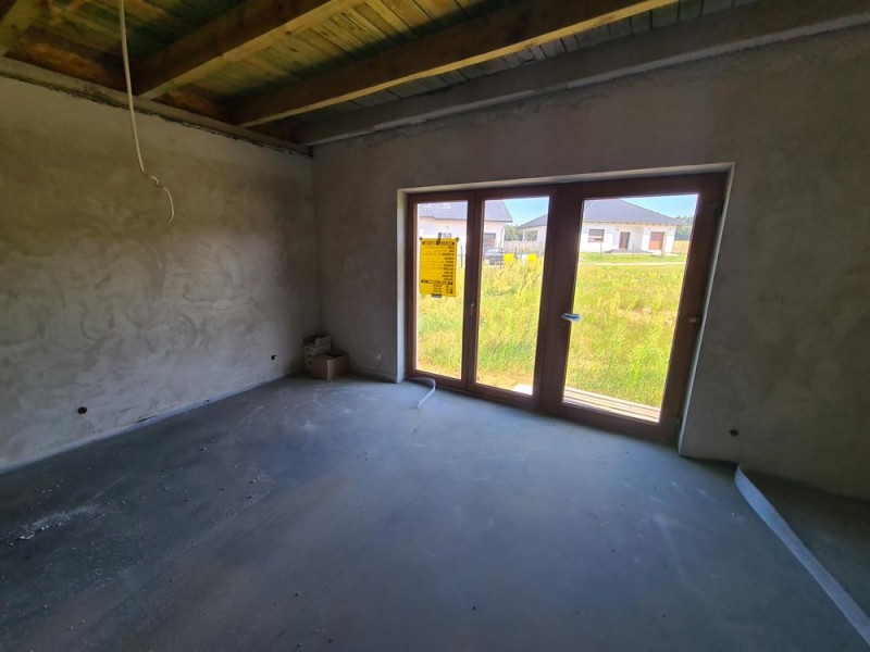 Dom został wybudowany z pustaka ceramicznego porotherm, jego mur zewnętrzny jest ocieplony styropianem, został również pokryty tynkiem. Dwuspadowy dach na konstrukcji drewnianej posiada membranę, został pokryty dachówką ceramiczną i jest częściowo deskowany. Zamontowane są wysokiej jakości okna drewniane a okno tarasowe w salonie jest w systemie HS. Jest rozprowadzone centralne ogrzewanie podłogowe a ściany są pokryte tynkiem.