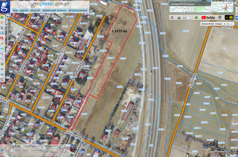Działka posiada powierzchnię 1,1525 ha, została częściowo objęta miejscowym planem zagospodarowania przestrzennego - MN - tereny zabudowy mieszkaniowej jednorodzinnej. Media w ulicy: energia elektryczna, woda oraz gaz.