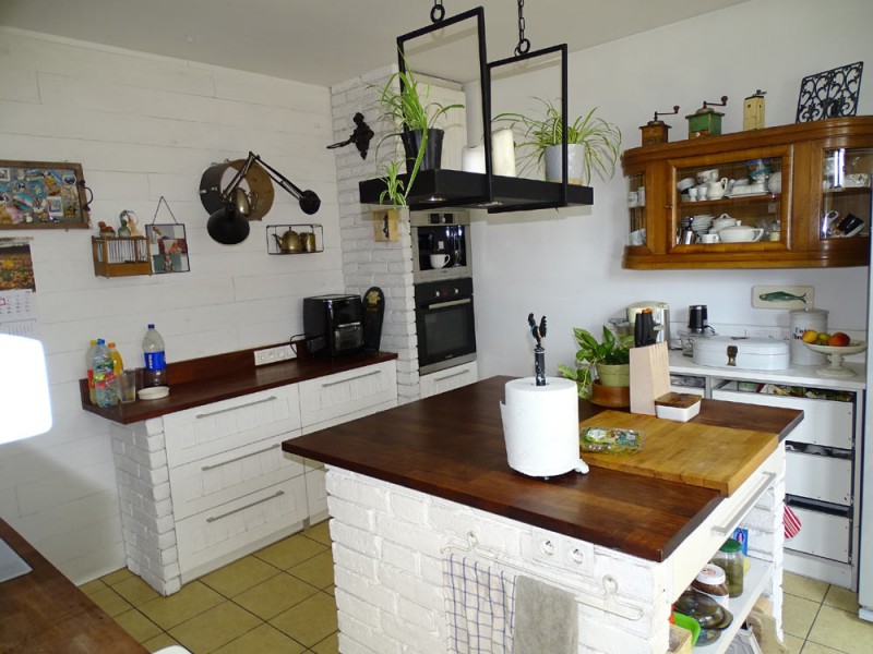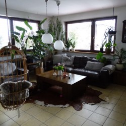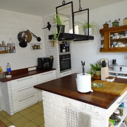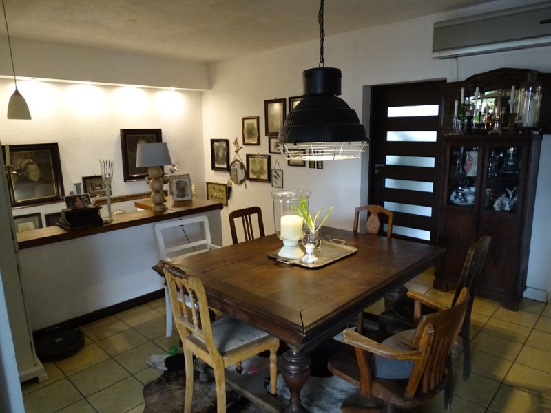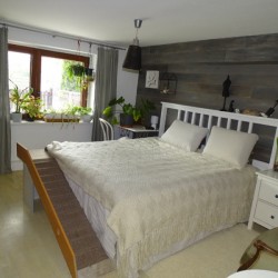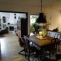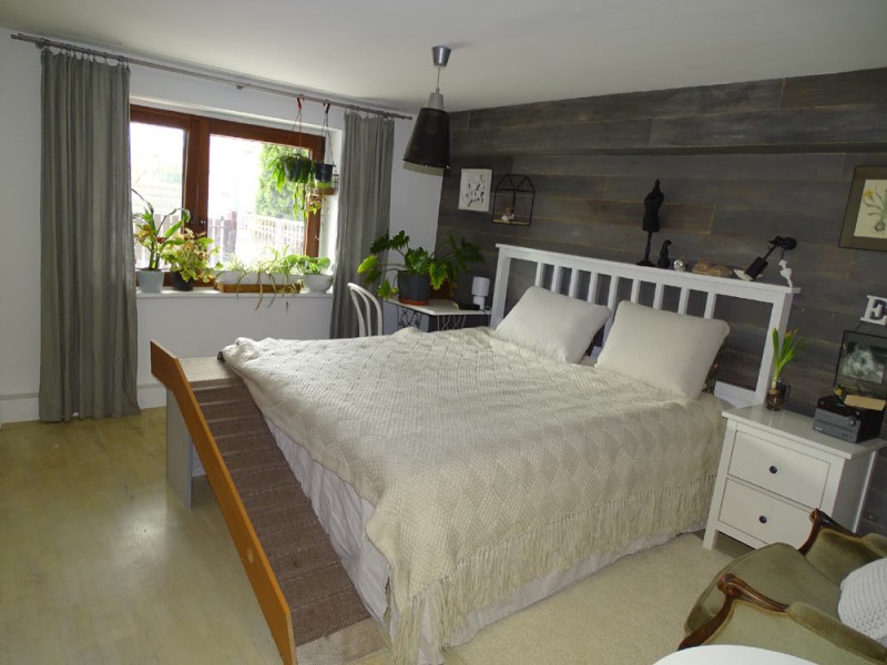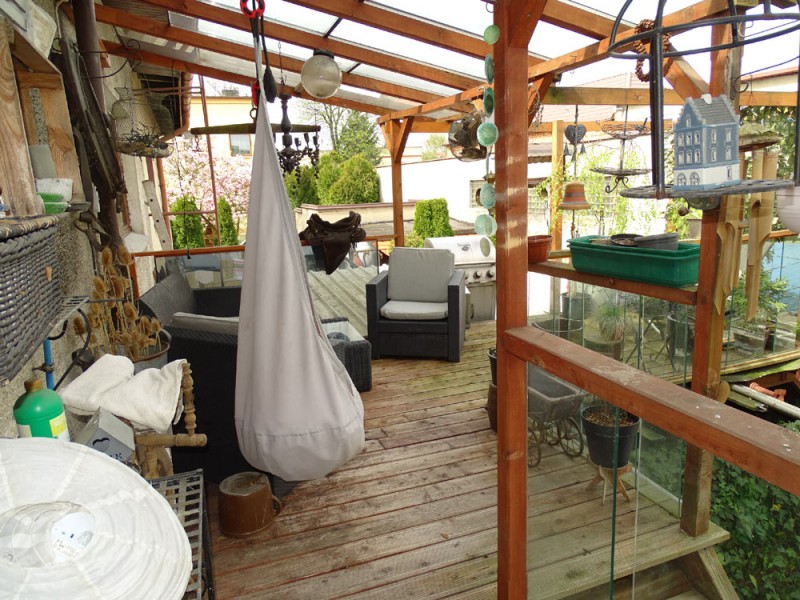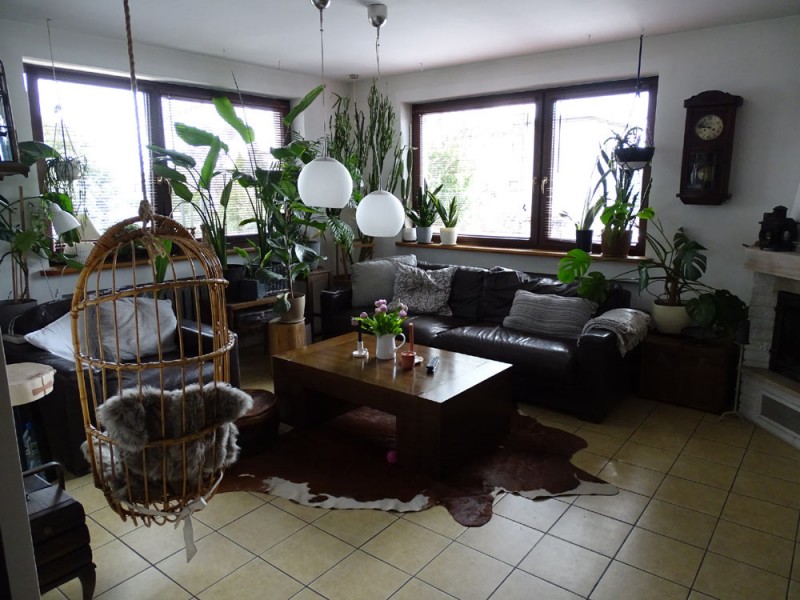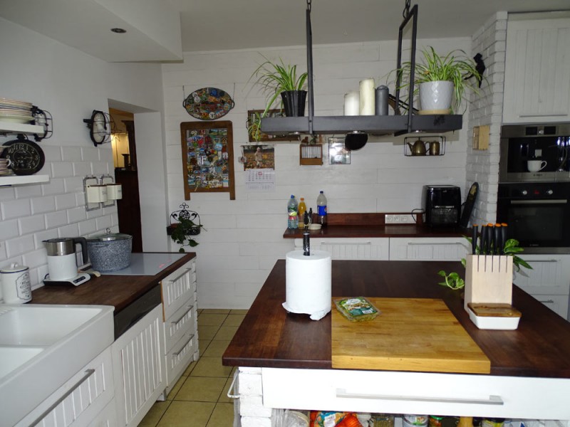 W domu zamontowane są okna z profili PCV w okleinie drewnopodobnej na podłogach znajduje się parkiet, panele i kafle ceramiczne. Ściany są gipsowane a stolarka drzwiowa wewnętrzna jest wykonana z drewna. Stylowa, widna kuchnia z wyspą jest umeblowana meblami na wymiar, posiada sprzęt gospodarstwa domowego - zmywarkę, płytę indukcyjną. Łazienka z oknem została wykończona w płytkach ceramicznych, zamontowano w niej kabinę prysznicową. Toaleta jest osobna. Centralne ogrzewanie zasila piec stałocieplny na miał, instalacja jest stalowa a grzejniki aluminiowe i żeliwne. Budynek wyposażony jest w klimatyzator. Na tarasie posiadającym zejście do ogrodu zostało urządzone przytulne miejsce na wypoczynek i rekreację. Cena obejmuje umeblowanie i wyposażenie kuchni a pozostałe meble są w opcji. Dom jest w bardzo dobrym stanie technicznym i nie wymaga nakładów finansowych, jest na bieżąco modernizowany i konserwowany.