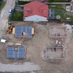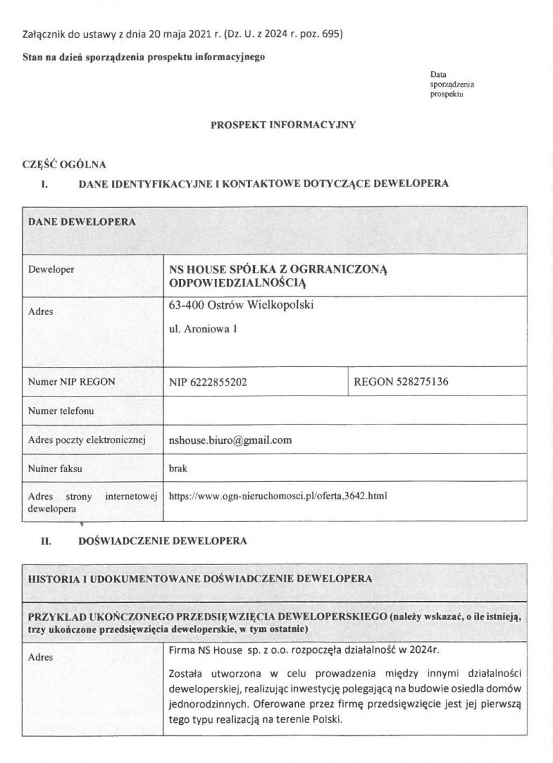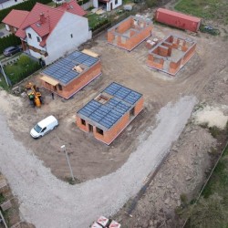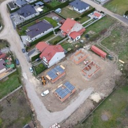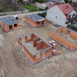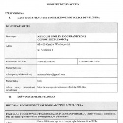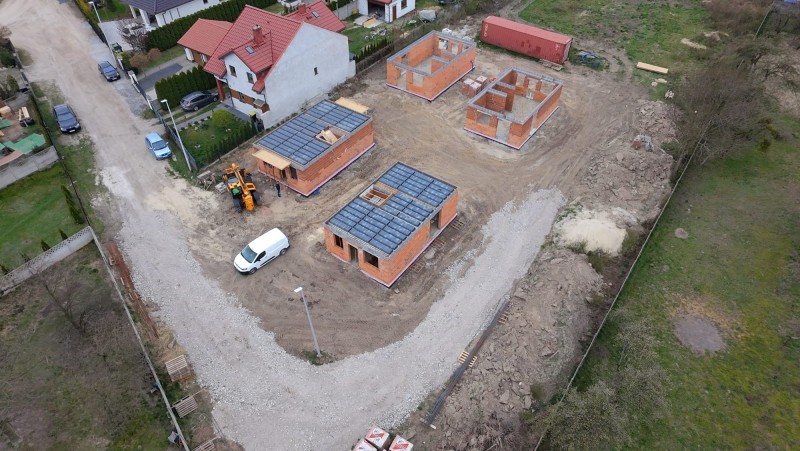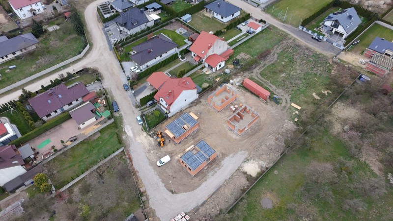 W budynku przewidziane jest centralne ogrzewanie z wysokiej jakości pompy ciepła, będzie to ogrzewanie podłogowe. Zamontowane zostaną okna PCV, które będą wyposażone w rolety zewnętrzne aluminiowe podnoszone elektrycznie. Rozprowadzone zostaną wszystkie instalacje, ściany zostaną pokryte tynkiem maszynowym cementowo - wapiennym. Każdy z budynków zostanie oddany do użytkowania w standardzie deweloperskim co umożliwi aranżację i wykończenia wnętrza według własnego, indywidualnego pomysłu. Teren wokół budynku zostanie zagospodarowany, wjazd na posesję i chodnik utwardzone będą kostką, a działka zostanie ogrodzona z trzech stron. Nieruchomość zostanie przyłączona do sieci energetycznej, wodnej, kanalizacyjnej i gazowej, opcjonalnie będziemy mieli dostęp do cieci telewizji kablowej i internetu. Rozpoczęcie prac budowlanych jest przewidziane na trzeci kwartał 2024 roku a oddanie inwestycji do użytkowanie na trzeci kwartał 2025 roku.