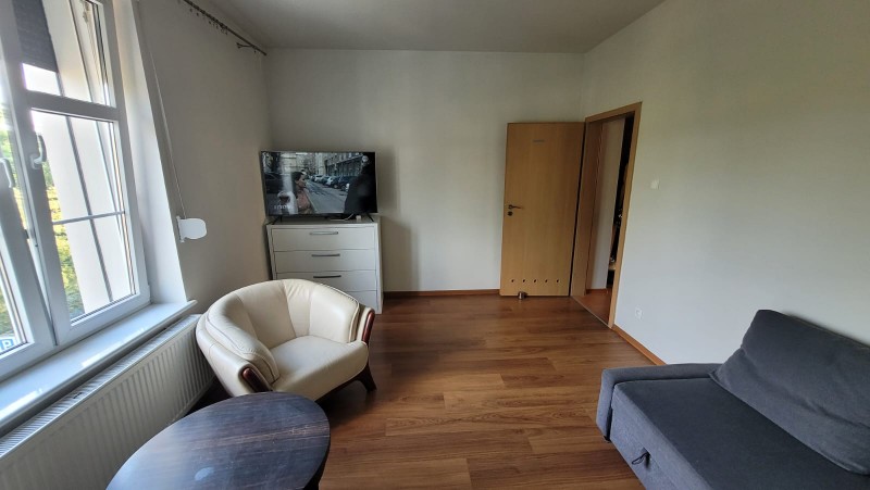 Mieszkanie położone jest na drugim piętrze, posiada powierzchnię 49,65 m2 i składa się z dwóch pokoi, kuchni, łazienki oraz korytarza. Do lokalu przynależy jedno pomieszczenie w piwnicy. Kuchnia została umeblowana i wyposażona w płytę indukcyjną, piekarnik, lodówko-zamrażarkę,zlewozmywak oraz pochłaniacz powietrza. Pokoje w mieszkaniu zostały częściowo umeblowane. Łazienkę wyposażono w kabinę prysznicową, umywalkę wraz z szafką oraz toaletę. Centralne ogrzewanie oraz wodę ciepłą zasila kocioł gazowy dwufunkcyjny.
