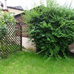 Na działce znajduje się budynek gospodarczo-garażowy z płyt. Działka jest zagospodarowana drzewami i krzewami ozdobnymi a wjazd wyłożony jest kostką.