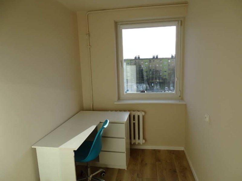 Oferujemy Państwu do wynajęcia mieszkanie, które położone jest na czwartym piętrze w bloku, przy ulicy Adama Asnyka w Ostrowie Wielkopolskim. Jego powierzchnia wynosi 34 m2, wewnątrz mamy do dyspozycji dwa pokoje, kuchnię, łazienkę przedpokój i balkon. Do lokalu przynależy pomieszczenie znajdujące się w piwnicy budynku. Kuchnia jest umeblowana i wyposażona. Łazienka został wykończona w płytkach ceramicznych, zamontowano w niej wannę i pralkę automatyczną. W sypialni znajduje się łóżko oraz biurko. Opłaty na rzecz wspólnoty mieszkaniowej wynoszą 350,00 zł/mies. zawierają zaliczkę na centralne ogrzewanie.