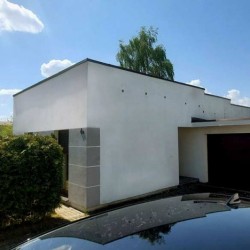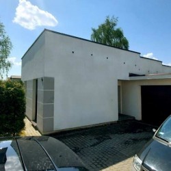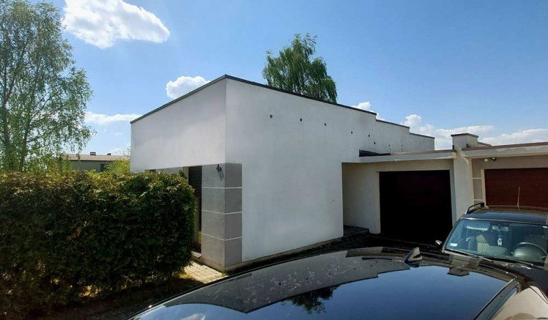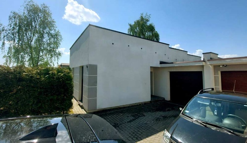 Budynek zaprojektowany został w przemyślany i nowoczesny sposób aby dać poczucie komfortu zamieszkiwania dla każdego. Wewnątrz mamy do dyspozycji pokój dzienny z kominkiem i wyjściem na taras i do ogrodu, trzy sypialnie, otwartą kuchnię, łazienkę z toaletą, hall oraz zamykany bramą segmentową garaż.