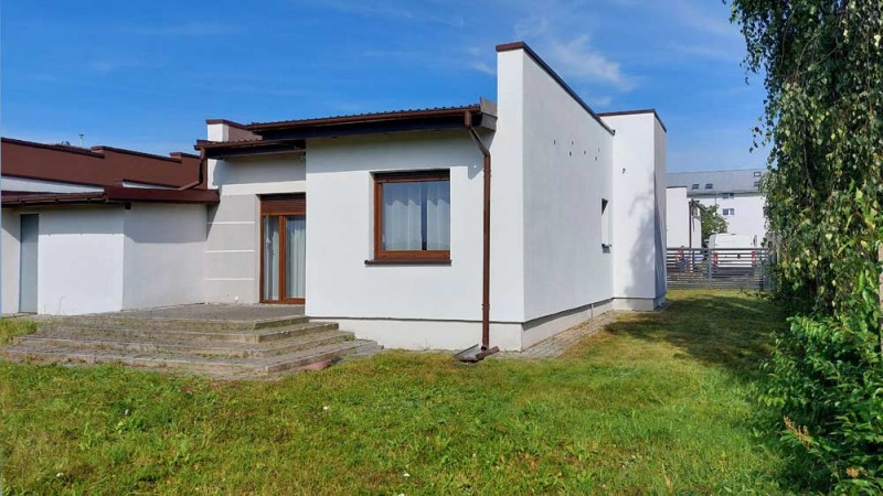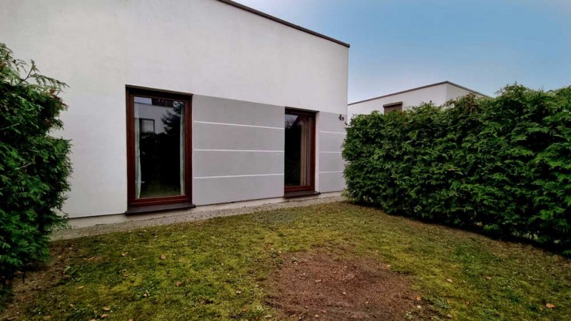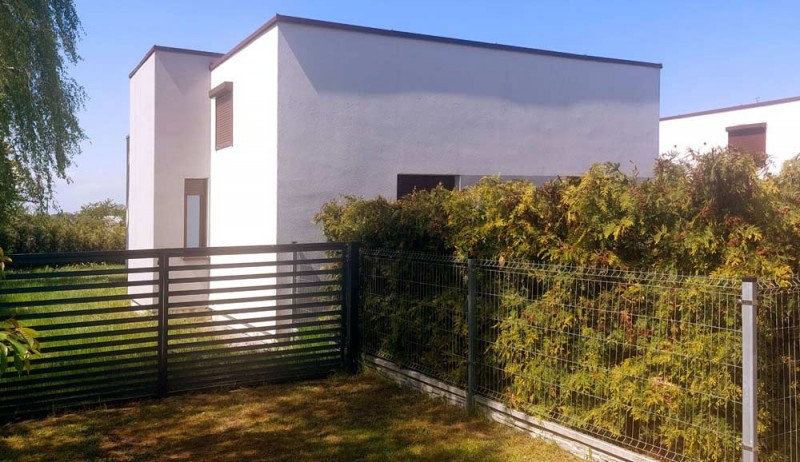 Działka jest ogrodzona płotem z siatki, podjazd, chodnik i taras zostały wykończone betonową kostką. Urządzony jest ogród z nasadzeniami krzewów iglastych. Posesja jest zamykana brama metalową i istnieje możliwość wjazdu na jej teren. Nieruchomość została przyłączona do sieci energetycznej, wodnej, kanalizacyjnej, gazowej oraz telewizji kablowej i internetu. Dogodny dojazd ulicą asfaltową. W niedalekiej okolicy mamy do dyspozycji market spożywczy, szkołę podstawową, przedszkole a dojazd do miasta zapewnia komunikacja miejska i dworzec kolejowy. Uroku dodaje sąsiadujący z tą miejscowością rezerwat przyrody z kompleksem stawów hodowlanych.