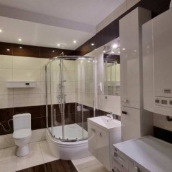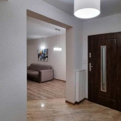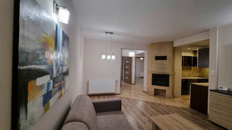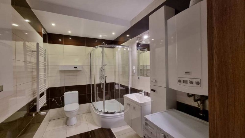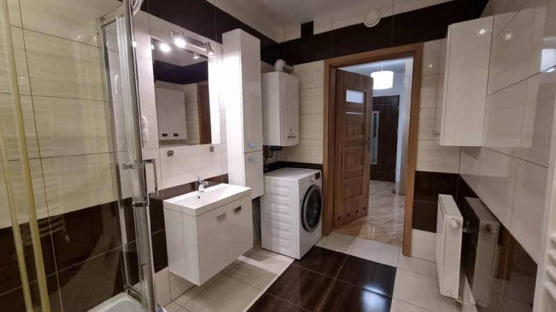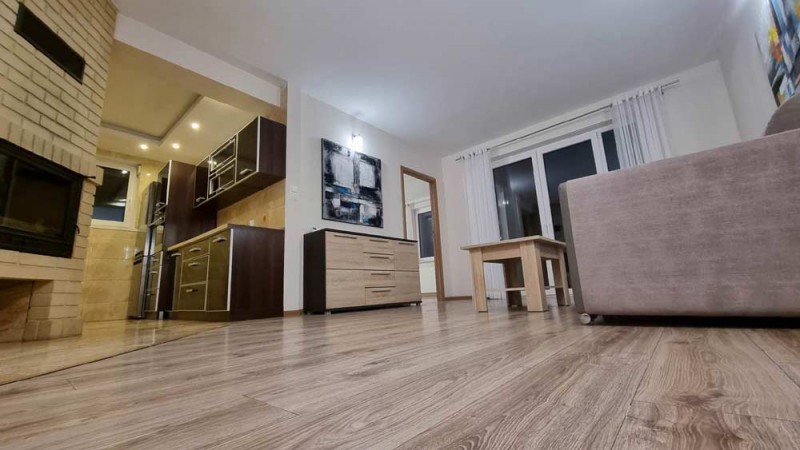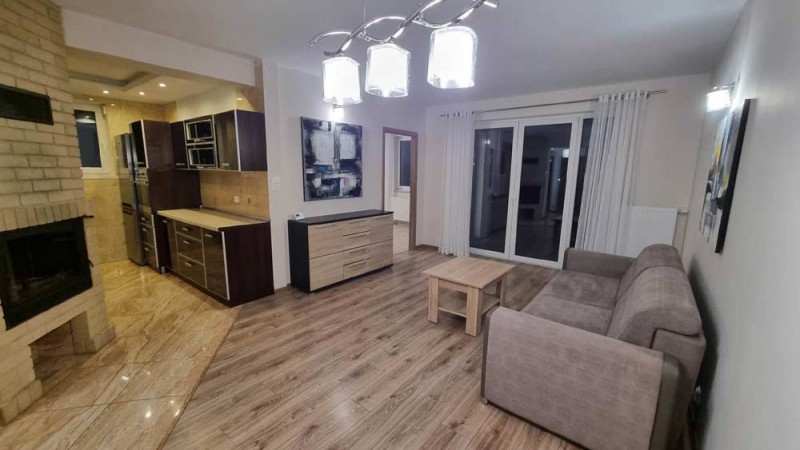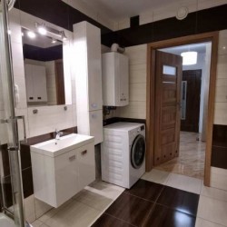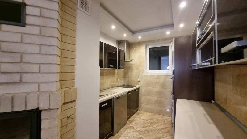 Dom jest przytulnie urządzony i w bardzo dobrym stanie technicznym. Zamontowane są okna z profili PCV w okleinie drewnopodobnej z roletami zewnętrznymi aluminiowymi. Podłogi zostały wyłożone panelami i kaflami ceramicznymi. Stolarka drzwiowa wewnętrzna jest firmy Porta. Ściany są gipsowane. Widna kuchnia została umeblowana meblami na wymiar, posiada sprzęt gospodarstwa domowego - lodówkę, zmywarkę, piekarnik elektryczny, płytę indukcyjną i pochłaniacz pary. Podłoga i ściany łazienki zostały wyłożona w płytkach ceramicznych, posiada ona kabinę prysznicową, umywalkę wraz z szafką i meble łazienkowe. Centralne ogrzewanie i wodę ciepłą zasila nowoczesny kocioł gazowy dwu funkcyjny formy Brotje, instalacja jest PCV a grzejniki stalowe. Dodatkowym atutem wspomagającym ogrzewanie domu jest rozprowadzenie ciepła z kominka na poszczególne pokoje. Cena obejmuje zabudowę trwałą - meble kuchenne wraz ze sprzętem agd oraz pojemną szafę garderobianą wymiar znajdującą się w przedpokoju.