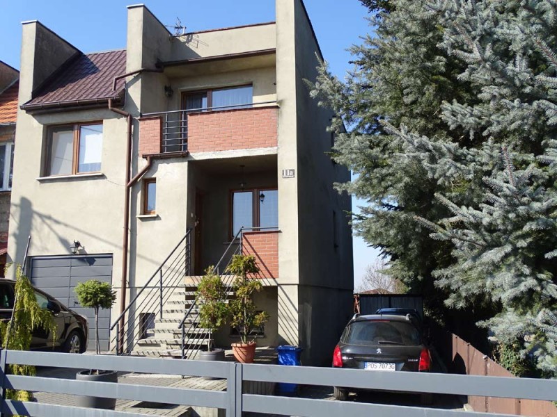 Na parterze mamy do dyspozycji pokój dzienny z aneksem kuchennym i wyjściem na taras i do ogrodu, przestronny holl oraz widną łazienkę. Na półpiętrze znajduje się 1 pokój. Piętro obejmuje dwa pokoje (jeden z nich posiada kominek), łazienkę oraz balkon. Ostatnią kondygnacją jest nieużytkowy strych. W piwnicy budynku znajduje się garaż, kotłownia, pralnia i pomieszczenie gospodarcze.