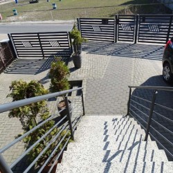 Działka jest ogrodzona płotem metalowym i zagospodarowana, urządzony jest ogród z licznymi nasadzeniami drzew i krzewów ozdobnych. Wjazd na posesję i chodnik są utwardzone betonową kostką. Nieruchomość została przyłączona do sieci energetycznej, wodnej, telewizji kablowej i internetu światłowodowego a odprowadzenie ścieków odbywa się za pomocą szamba.