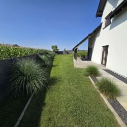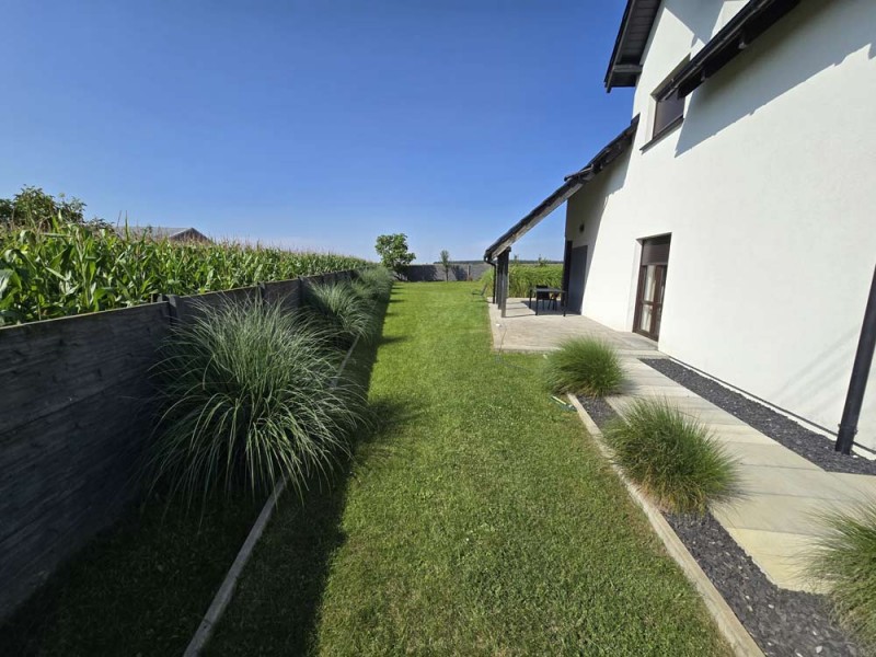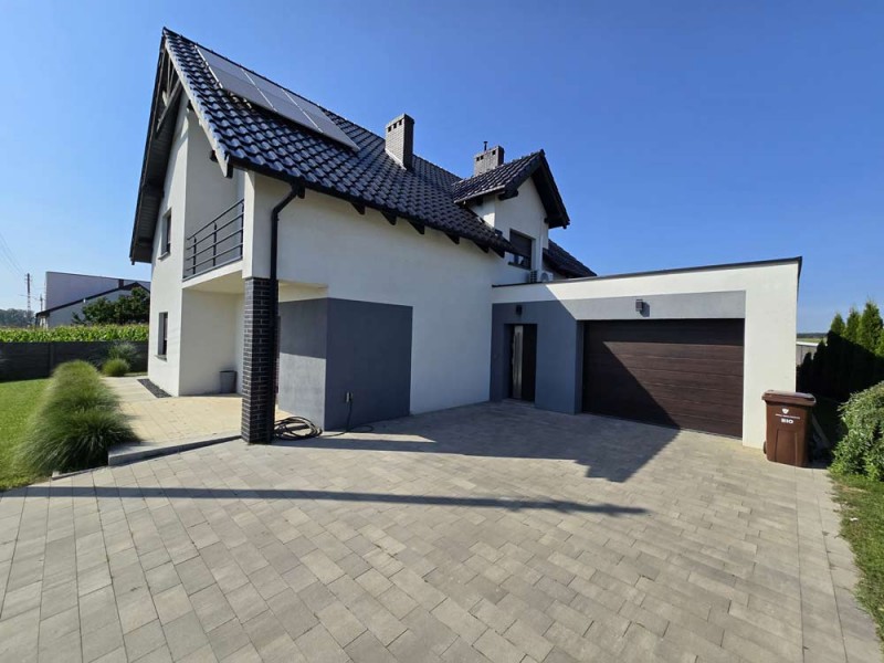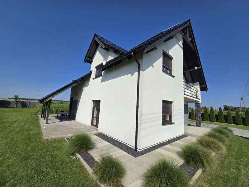 Teren posesji został ogrodzony i zagospodarowany, jej front został ogrodzony płotem metalowym na podmurówce a w pozostałej części płotem z płyt betonowych. Brama wjazdowa jest sterowana zdalnie. Wjazd i chodnik zostały utwardzone betonową kostką. Urządzony został ogród z nasadzeniami krzewów i traw ozdobnych. Nieruchomość położona jest przy ulicy asfaltowej, została przyłączona do sieci energetycznej i wodnej a odprowadzenie ścieków odbywa się za pomocą szamba. Zapraszamy Państwa do kontaktu celem umówienia terminu prezentacji.