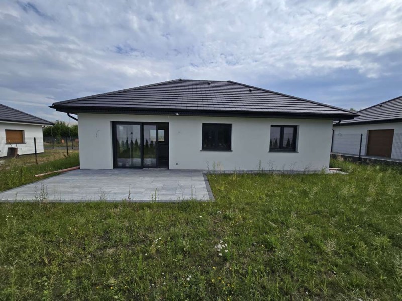 Przedstawiamy Państwu ofertę sprzedaży nowego domu, którego powierzchnia użytkowa wynosi 95,21 m2. Technologia budowy jest tradycyjna. Ściany wykonane są z pustaków ceramicznych i cegły pełnej na zaprawie wapienno – cementowej, ocieplone zewnętrznie styropianem o grubości 15 centymetrów i pokryte tynkiem. Dach jest kopertowy, na konstrukcji drewnianej, a jego pokrycie stanowi dachówka ceramiczna.