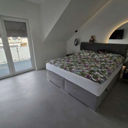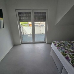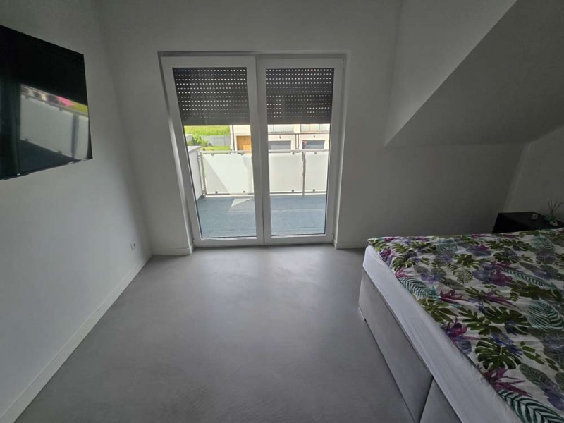 • Dwie dodatkowe sypialnie z dostępem do wspólnego balkonu. Obie wyposażone w łóżka, w jednej dodatkowo znajduje się telewizor oraz szafa.