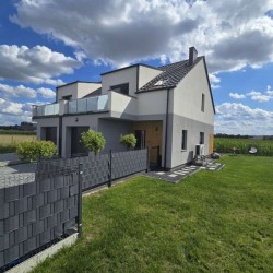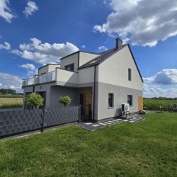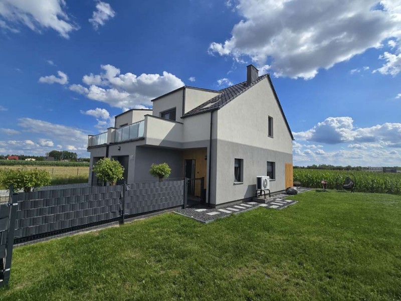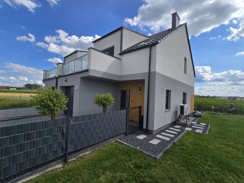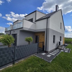 Nowoczesny dom w zabudowie bliźniaczej, zaprojektowany z myślą o komforcie, funkcjonalności i wysokim standardzie wykończenia. Wyposażony w pompę ciepła, instalację fotowoltaiczną 5 kW, zmiękczacz wody oraz klimatyzację sufitową, co zapewnia energooszczędność i wygodę przez cały rok.