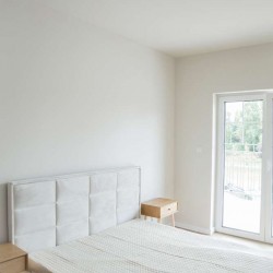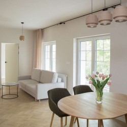 Lokal ten stanowi odrębną własność z udziałem w gruncie i księgą wieczystą a jego powierzchnia użytkowa wynosi 53,20 m2. Mieszkanie jest położone na pierwszym piętrze. Układ pomieszczeń został zaprojektowany w sposób nowoczesny i przestrzenny. Wewnątrz mamy do dyspozycji pokój dzienny z aneksem kuchennym, dwie sypialnie, łazienkę, przedpokój oraz duży taras o powierzchni 98,83 m2.