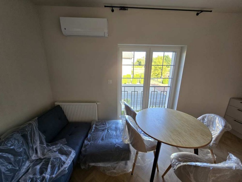 Materiały użyte do wykończenia wnętrza są wysokiej jakości, lokal jest utrzymany w wysokim standardzie. Zamontowane są okna z profili PCV. Ze względów użytkowych i estetycznych podłogi zostały pokryte panelami i wielkoformatowymi kaflami ceramicznymi. Ściany są gipsowane. Kuchnia została umeblowana meblami na wymiar, wyposażono ją w sprzęt gospodarstwa domowego – lodówkę, płytę indukcyjną, piekarnik elektryczny, zmywarkę i pochłaniacz pary. Salon jest klimatyzowany. Łazienka jest wykończona w płytkach ceramicznych, posiada prysznic geberit, umywalkę wraz z szafką oraz pralkę automatyczną. Centralne ogrzewanie i wodę ciepłą kocioł gazowy dwu funkcyjny, grzejniki są stalowe. Cena obejmuje zabudowę trwałą – meble kuchenne wraz ze sprzętem agd oraz pozostałe umeblowanie i wyposażenie.