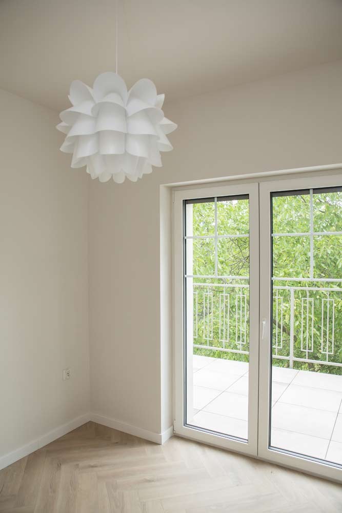 Lokal ten stanowi odrębną własność z udziałem w gruncie i księgą wieczystą a jego powierzchnia użytkowa wynosi 53,29 m2. Mieszkanie jest położone na drugim piętrze. Układ pomieszczeń został zaprojektowany w sposób nowoczesny i przestrzenny. Wewnątrz mamy do dyspozycji pokój dzienny z aneksem kuchennym, dwie sypialnie, łazienkę, przedpokój oraz dwa balkony o pow. 9,38 m2 i 15,73 m2.