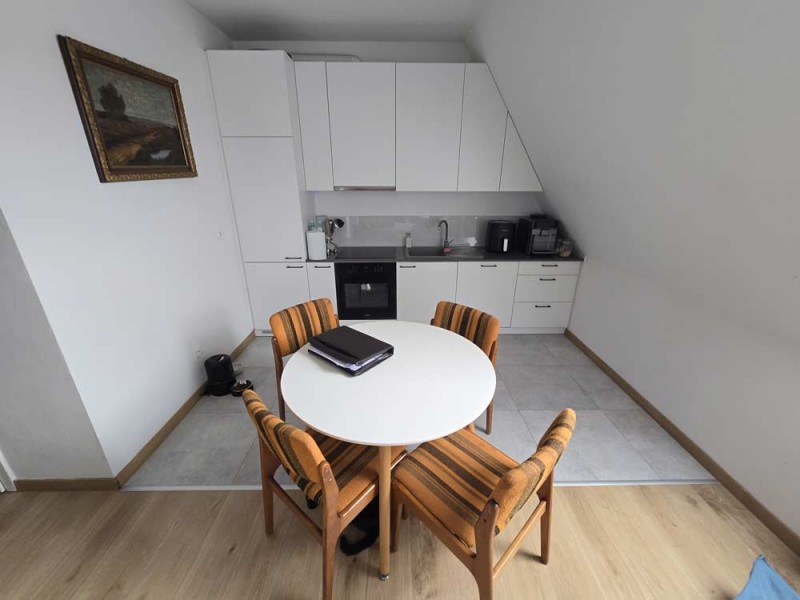 Materiały użyte do wykończenia wnętrza są wysokiej jakości, lokal jest utrzymany w wysokim standardzie. Zamontowane są okna z profili PCV, okna posiadają rolety zewnętrzne aluminiowe z napędem elektrycznym. Ze względów użytkowych i estetycznych podłogi zostały pokryte panelami i wielkoformatowymi kaflami ceramicznymi. Ściany są gipsowane. Kuchnia została umeblowana meblami na wymiar, wyposażono ją w sprzęt gospodarstwa domowego – lodówkę, płytę indukcyjną, piekarnik elektryczny, zmywarkę i pochłaniacz pary. Łazienka jest wykończona w płytkach ceramicznych, posiada prysznic geberit oraz umywalkę wraz z szafką. Centralne ogrzewanie i wodę ciepłą zasila ciepłownia miejska. Cena obejmuje zabudowę trwałą – meble kuchenne wraz ze sprzętem agd a pozostałe umeblowanie i wyposażenie jest w opcji.