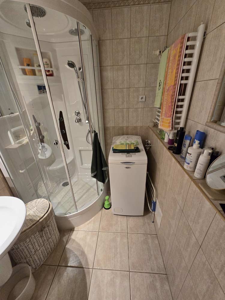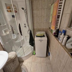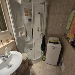 Zamontowane są okna z profili PCV 3 szybowe z roletkami wewnętrznymi a podłogi wyłożone zostały panelami i kaflami ceramicznymi. Wymienione zostały drzwi wejściowe do mieszkania. Duży pokój jest klimatyzowany. Widna kuchnia jest umeblowana, posiada kuchenkę gazową z piekarnikiem elektrycznym. Ściany i podłoga łazienki są wykończone w płytkach ceramicznych, zamontowano w niej kabinę prysznicową. Toaleta jest osobna, wyposażono ją w geberit i umywalkę. Cena obejmuje meble kuchenne, pojemną szafę na wymiar znajdującą się w korytarzu a pozostałe umeblowanie jest w opcji.